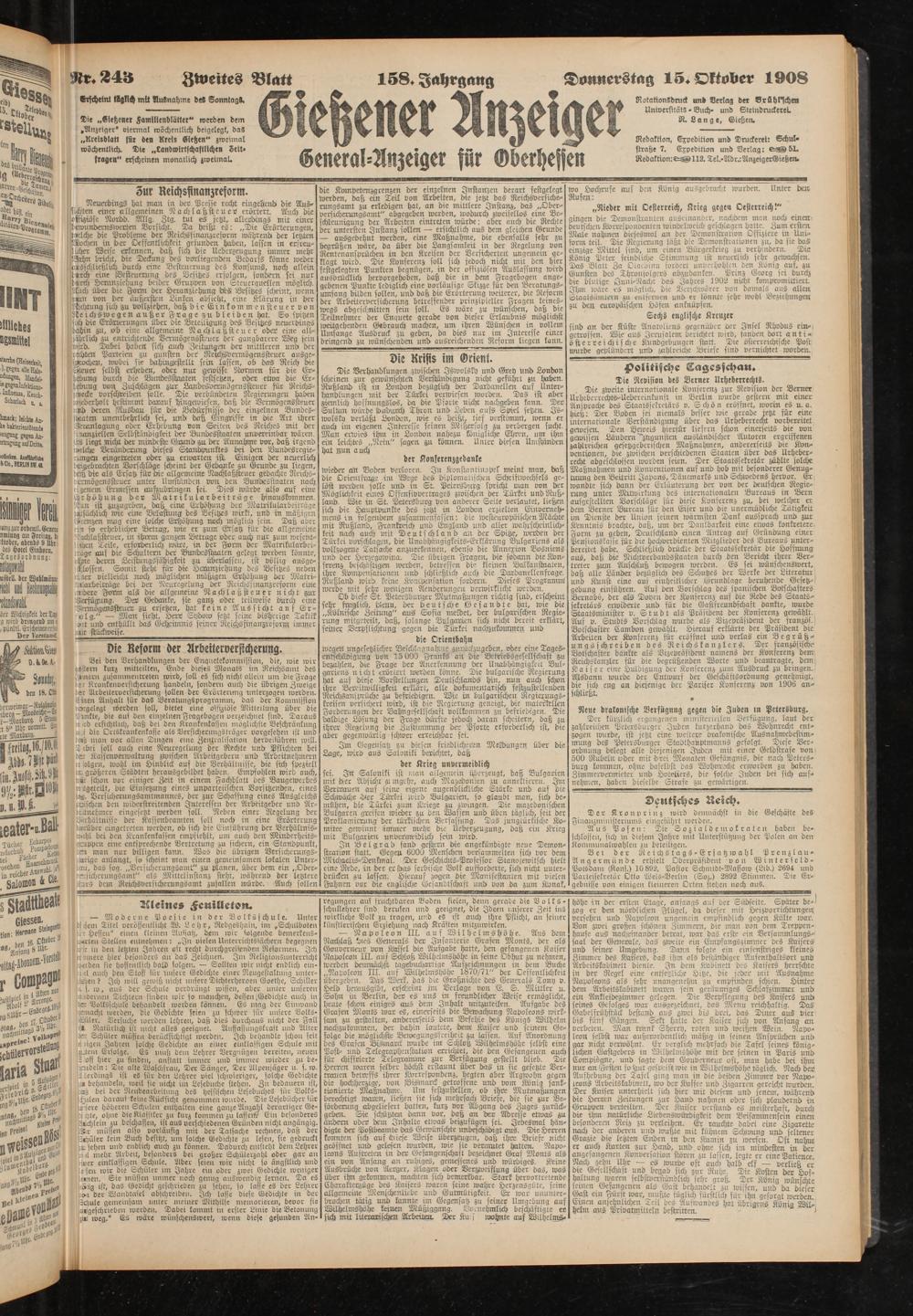 Donnerstag 15. Oktober 1908
