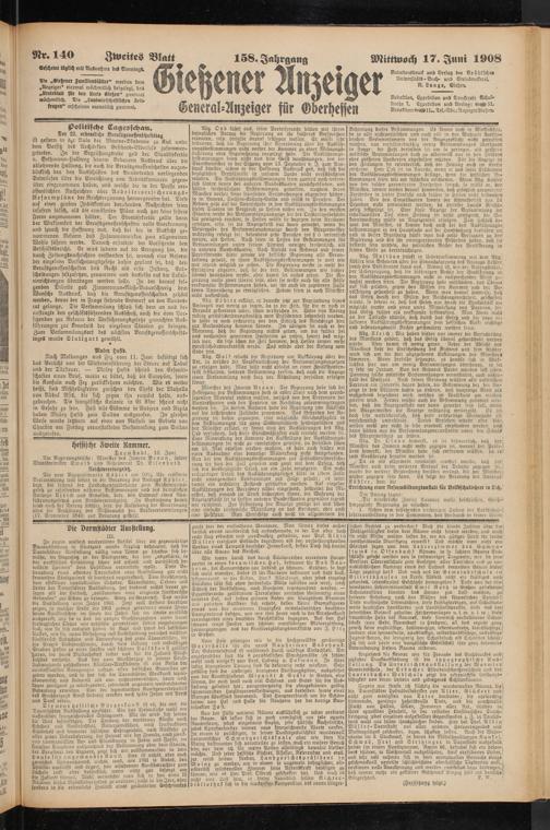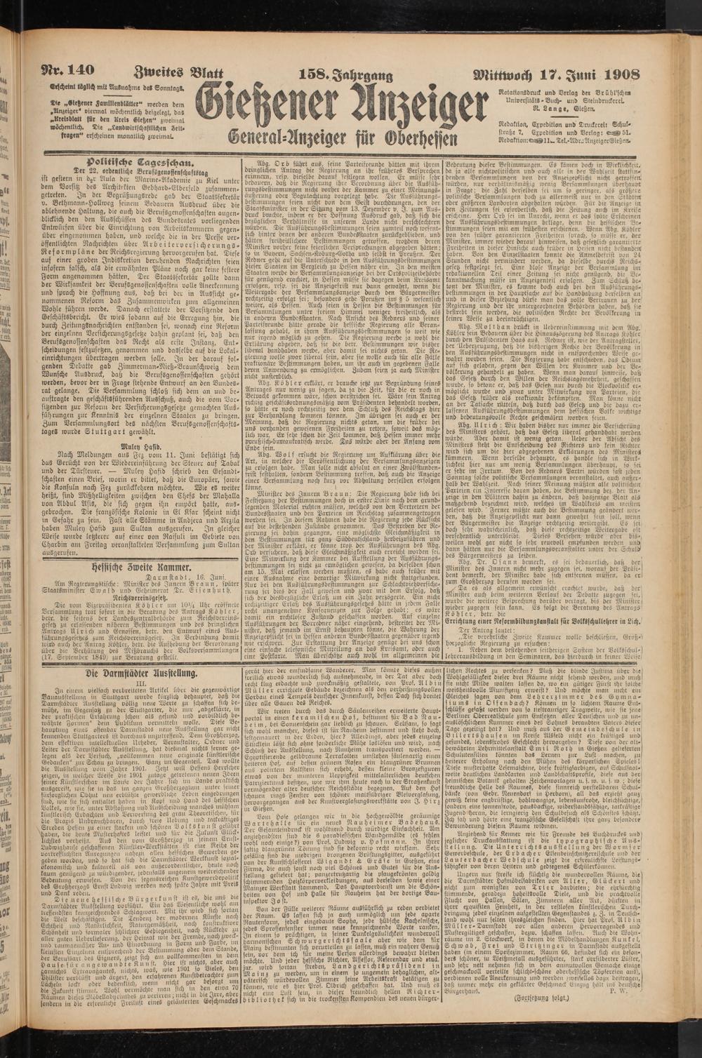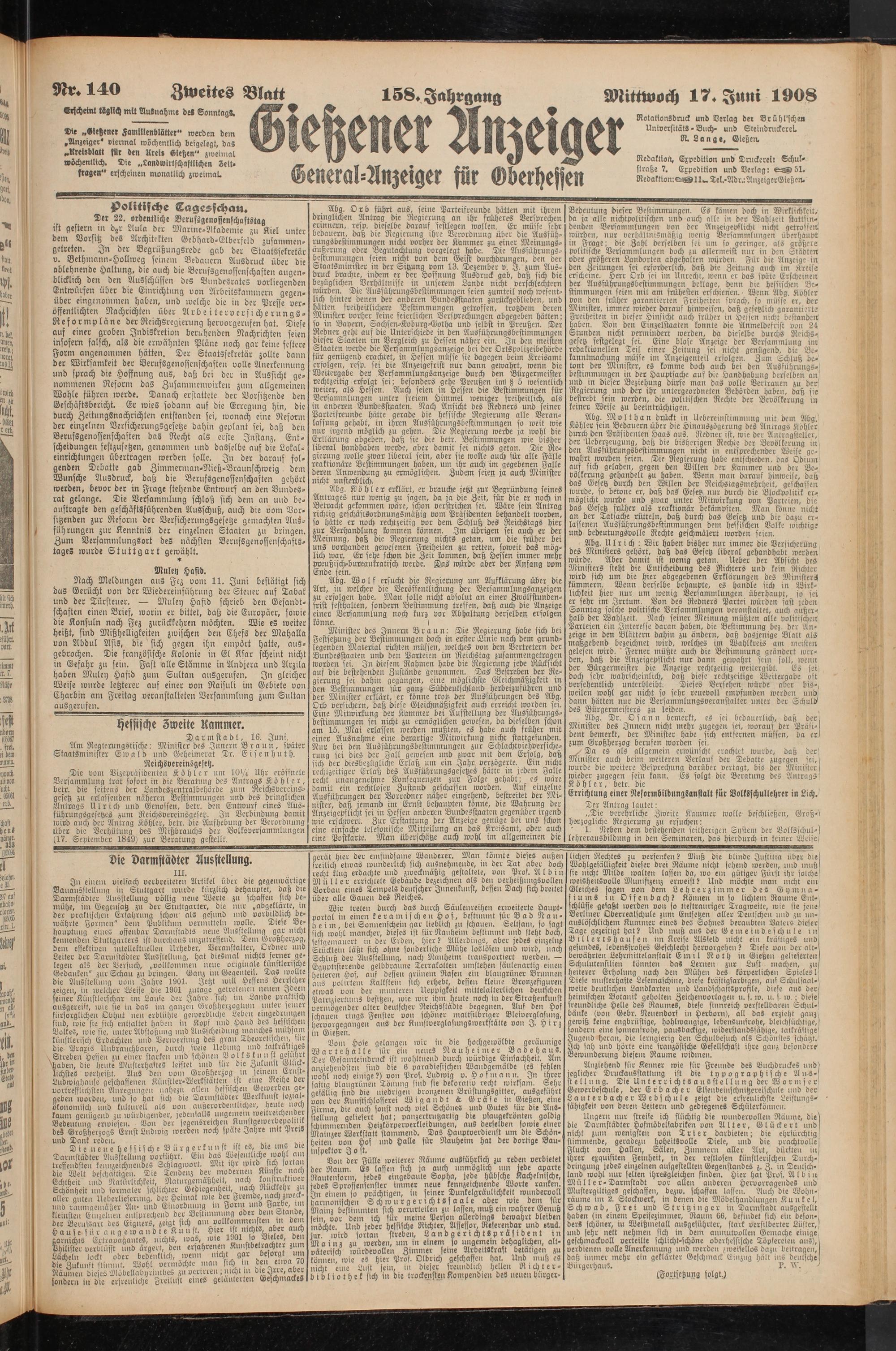 Zweites Blatt 158. Jahrgang Mittwoch 17. Juni 1908