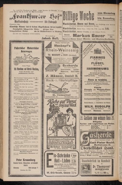 Alleiniger Vertreter für Giessen und Umgebung der Motorwagenfabrik A. Ruppe & Sohn in Apolda der Bielefelder Maschinen - Fabrik vormals Dttrkopp & Co. in Bielefeld.