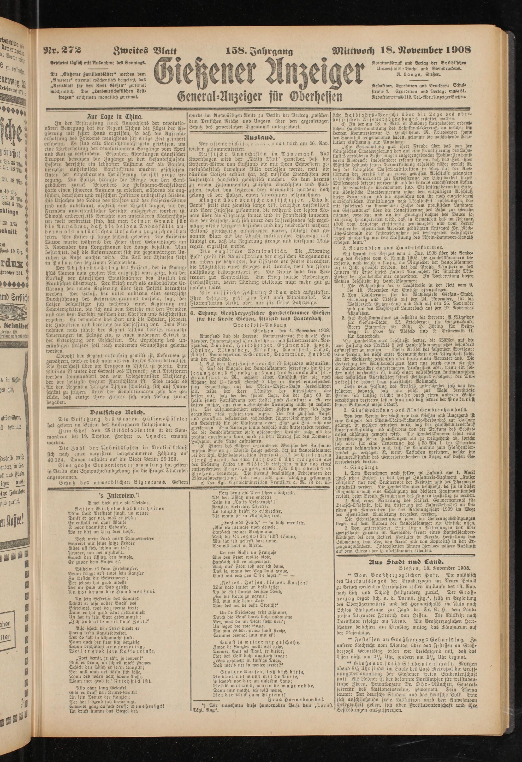 Gießen, 18. Slooember 1908.