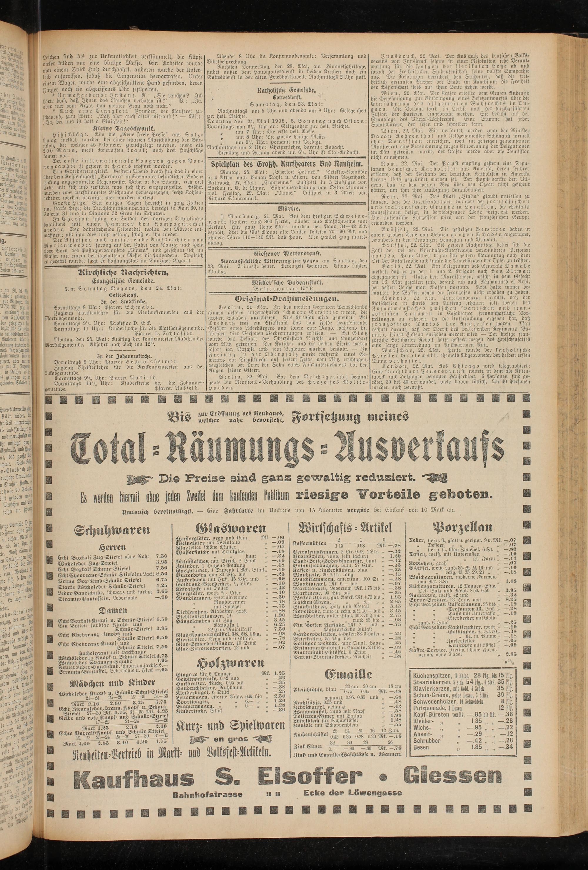 Sonntag Den 24. 9)1 a i 1908, 5. Sonntag nach Ostern: Vormtttags von 6'/.. Uhr an: Gelegenheu zur heil. Beichte.