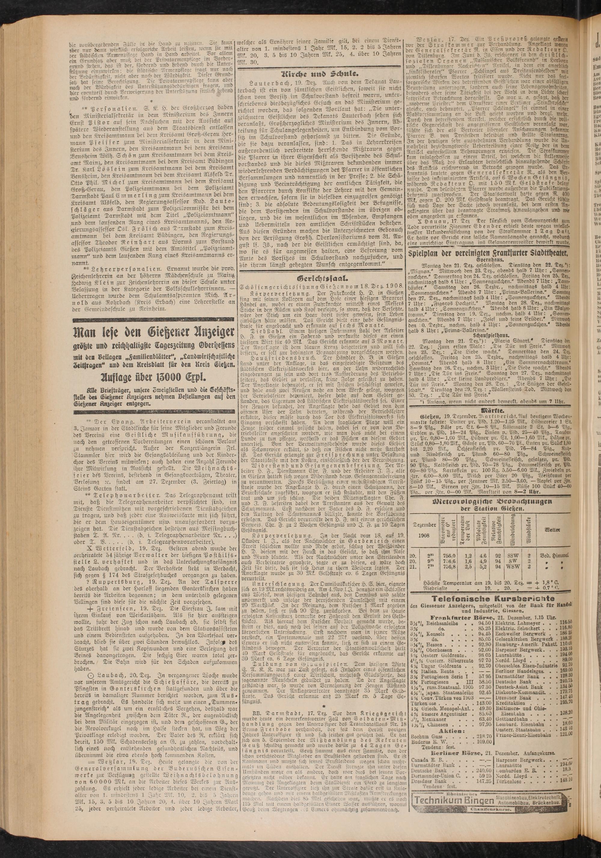 und Industrie. Giessen. Frankfurter Bör*e, 21. Dezember, 1.15 Uhr.