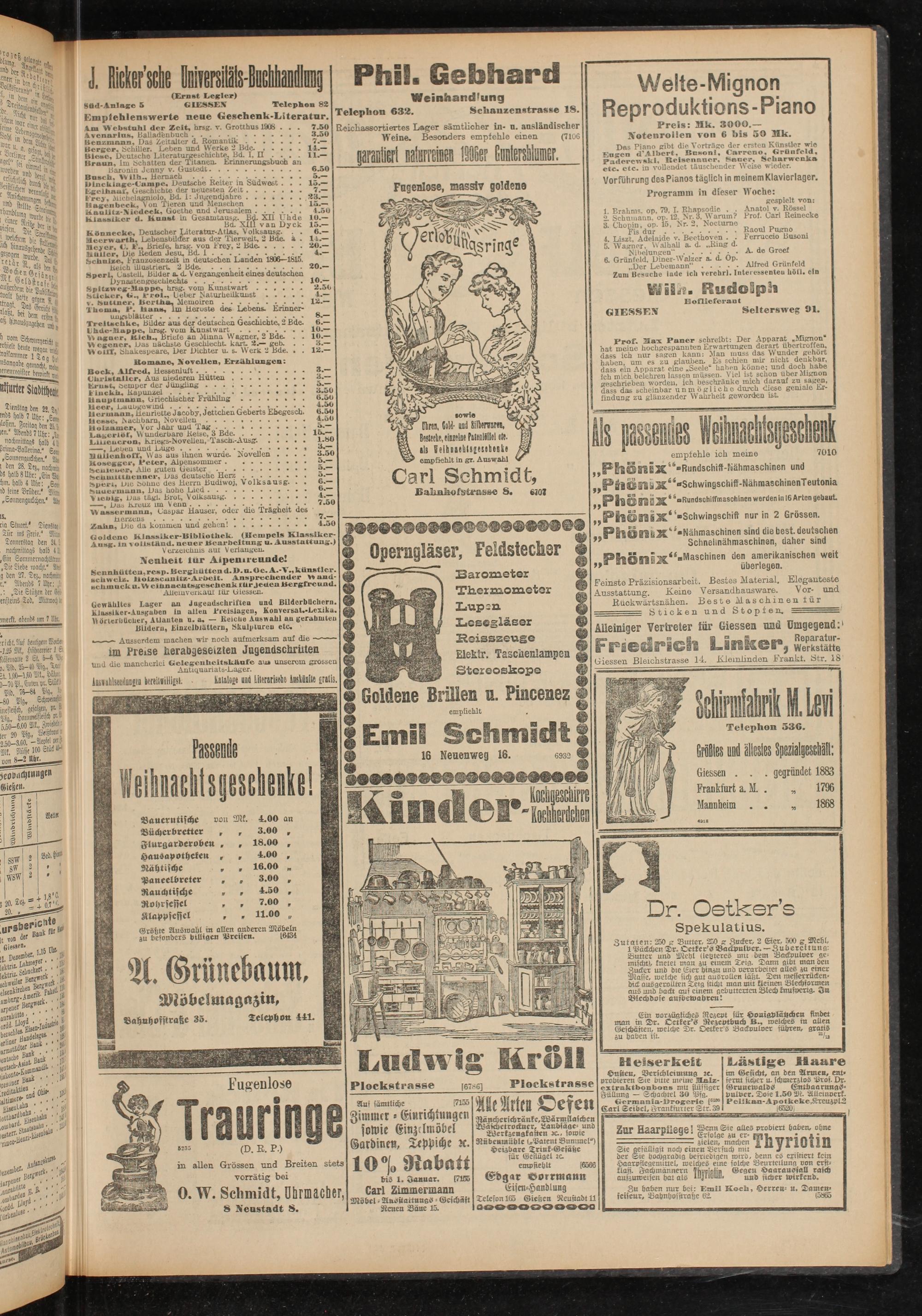 — Sticken und Stopfen. ----------------- Alleiniger Vertreter für Giessen und Umgegend: Lmker, Werkstätte Giessen Bleichstrasse 1-1. Kleinlinden Krankt. Str. 18