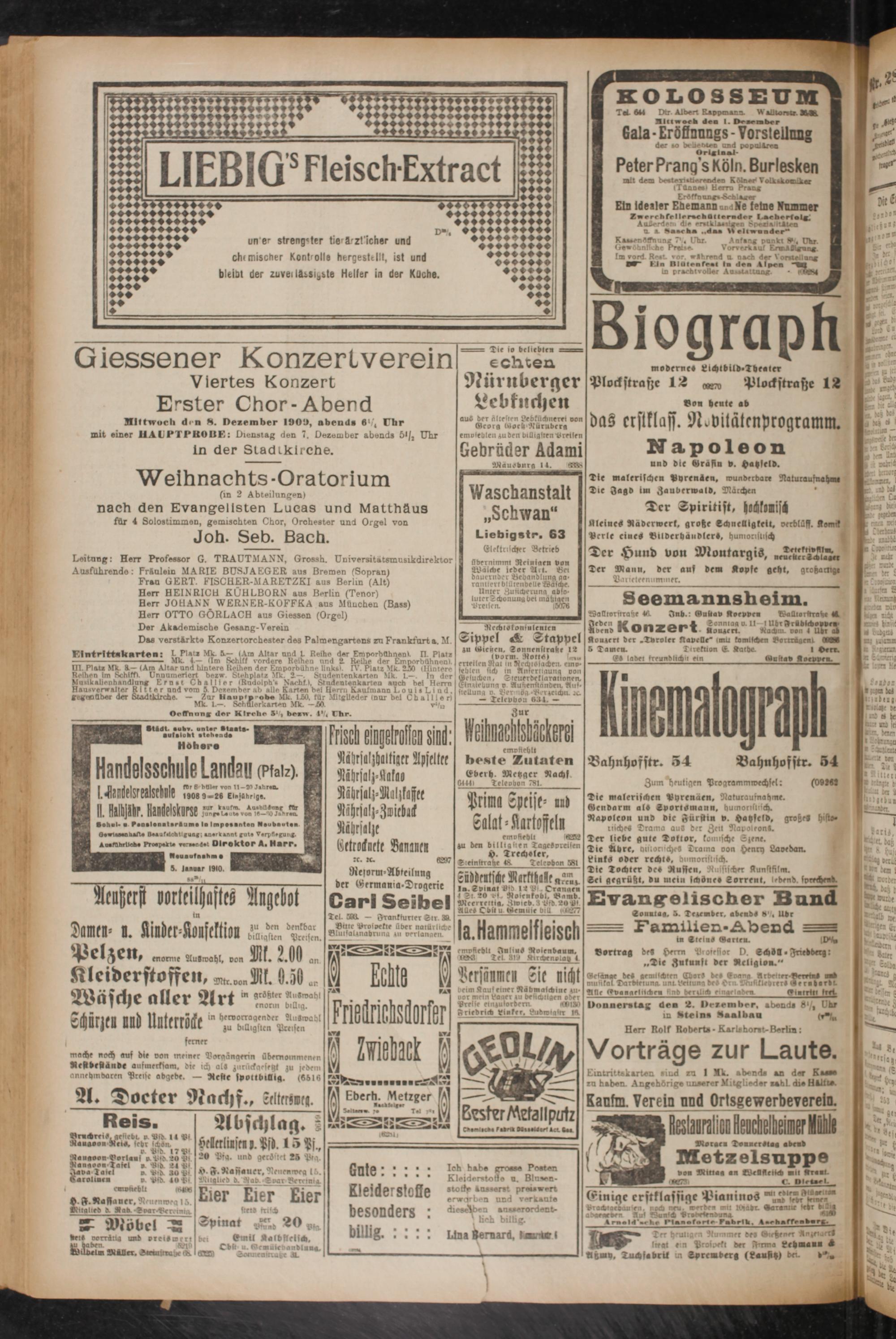 Mittwoch dm S. Dezember 1909, abends 6 Vt Uhr mit einer HAUPTPROBE: Dienstag den 7. Dezember abends 51/. Uhr in der Stadlkirche.