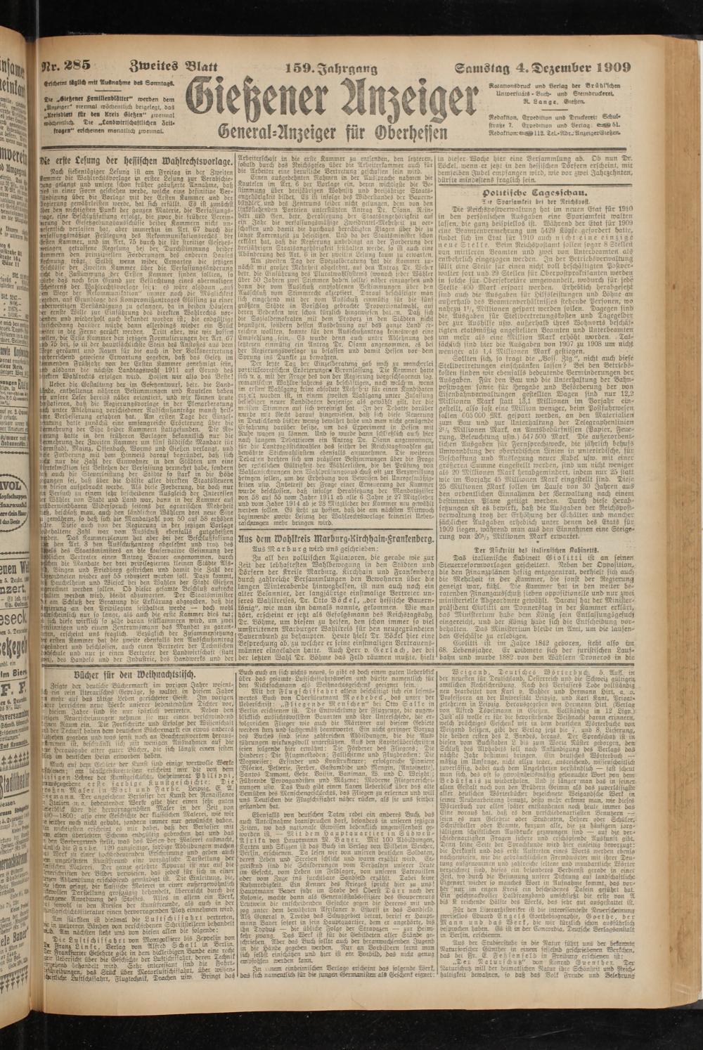 Samstag 4. Dezember 1909