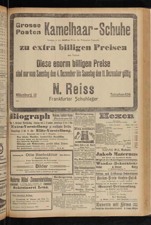 Sonntag den 12. Dezember l. F., nachmittags 2 Uhr
