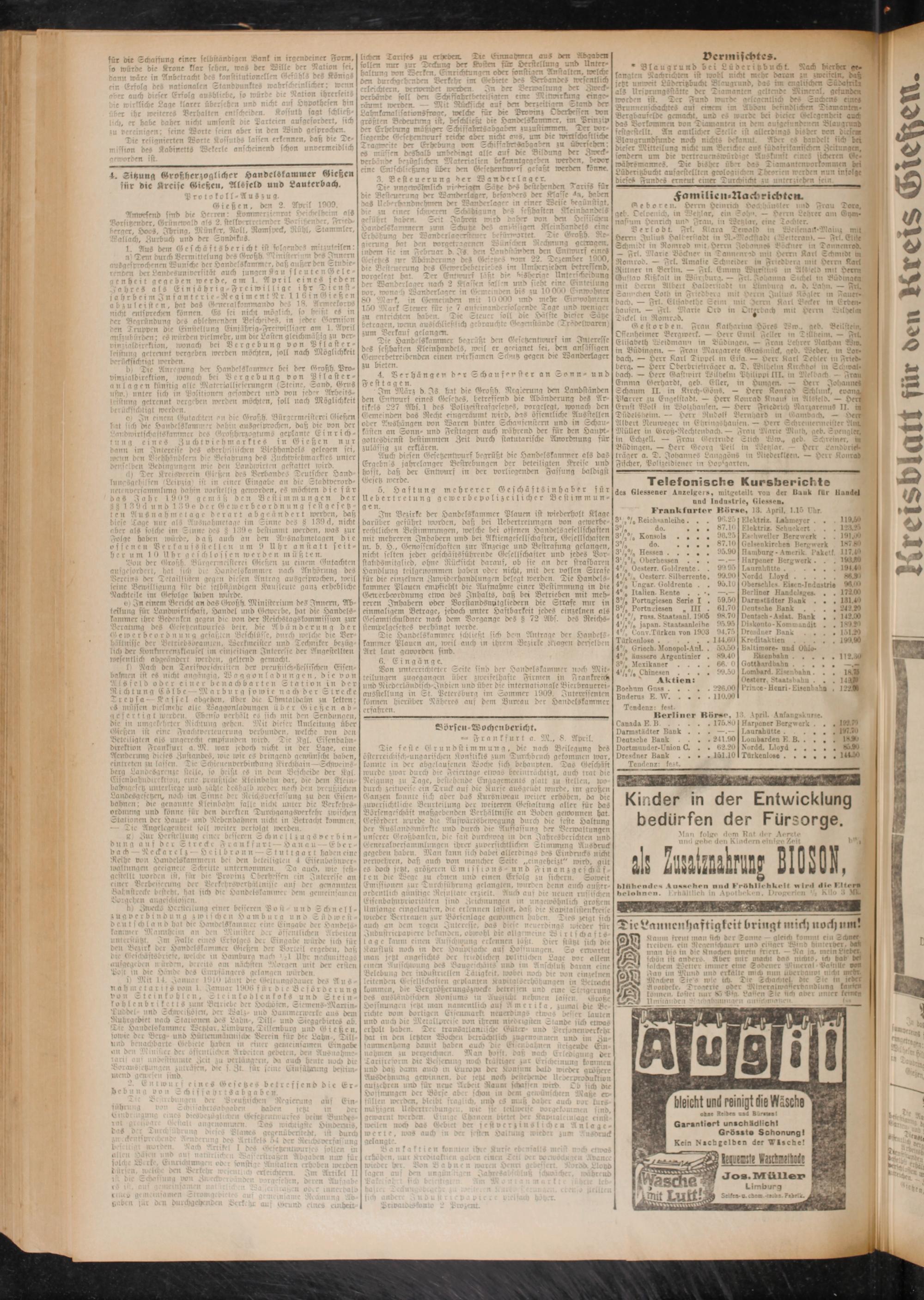 Giessener Anzeigers, mit^eteilt von der Hauk für nnd Industrie, Glessen.