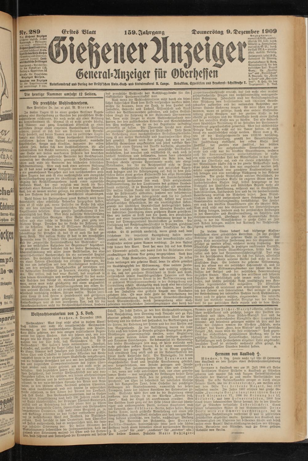 Gießen, 8. Dezember 1909.