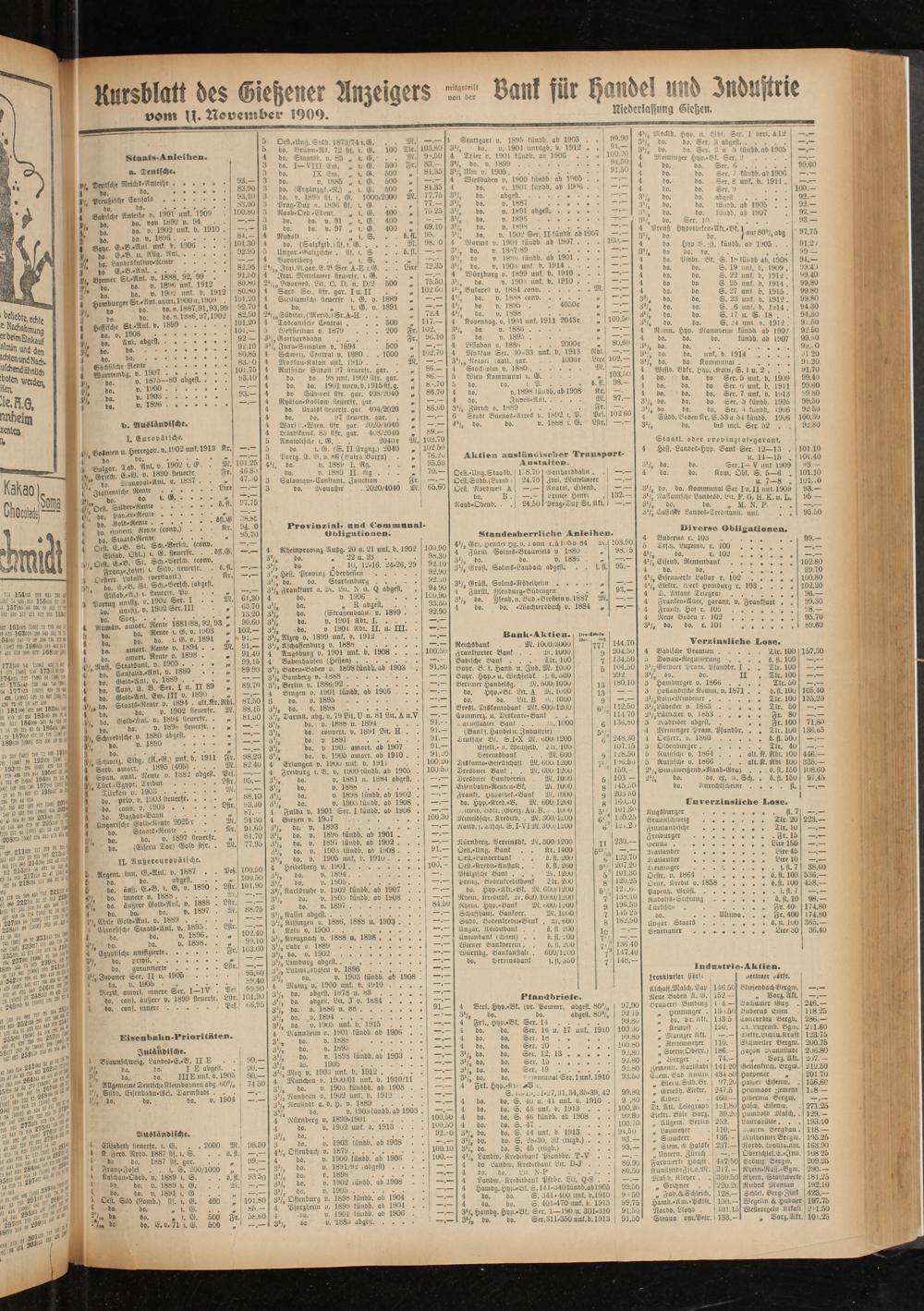 Kursblatt des Gießener Anzeigers ä Bant für Hande) und Industrie