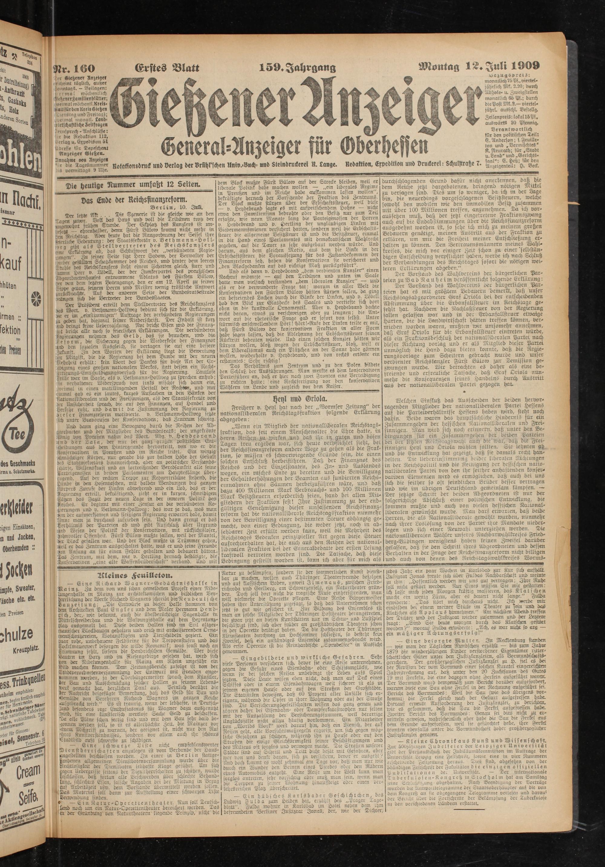 Nr. 160 Erstes Blatt 159.Jahrgang Montag IS. Juli 1909