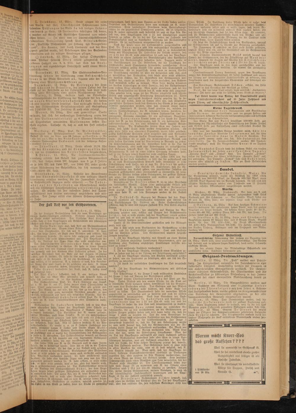 Gießen, 12. März. Viehmarkt. Bei dem am 9~unb 10. März abgehaltenen Markte waren aufgetrieben 1449 Stück