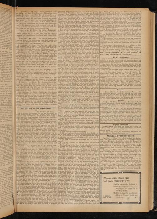 — Frankfurt, 12. März. Heute abend 10,34 Uhr, ir ifft der Kronprinz und die Kronprinzessin hier ii n, um im .Hippodrom den Reiterfesten beizuwohnen, X Hanau, 11. März. Dle Stadtverordneten-Vel- ia nnnlung erhöhte das Gehalt des ziveiten Bürgermeisters üild, das bisher 6000 Mk. steigend von 3 zu 3 Jahren uni je 500 Ml. bis 7500 Mk., um 1000 Mk. unter gleich- jeriligec 9lbänberung der Gehaltsskala, die sich nunmehr auf ;000—8500 Mk. stellt.