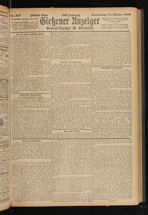 Rr» 247 Zweites Blatt 158. Jahrgang Donnerstag 21. Oktober 1909