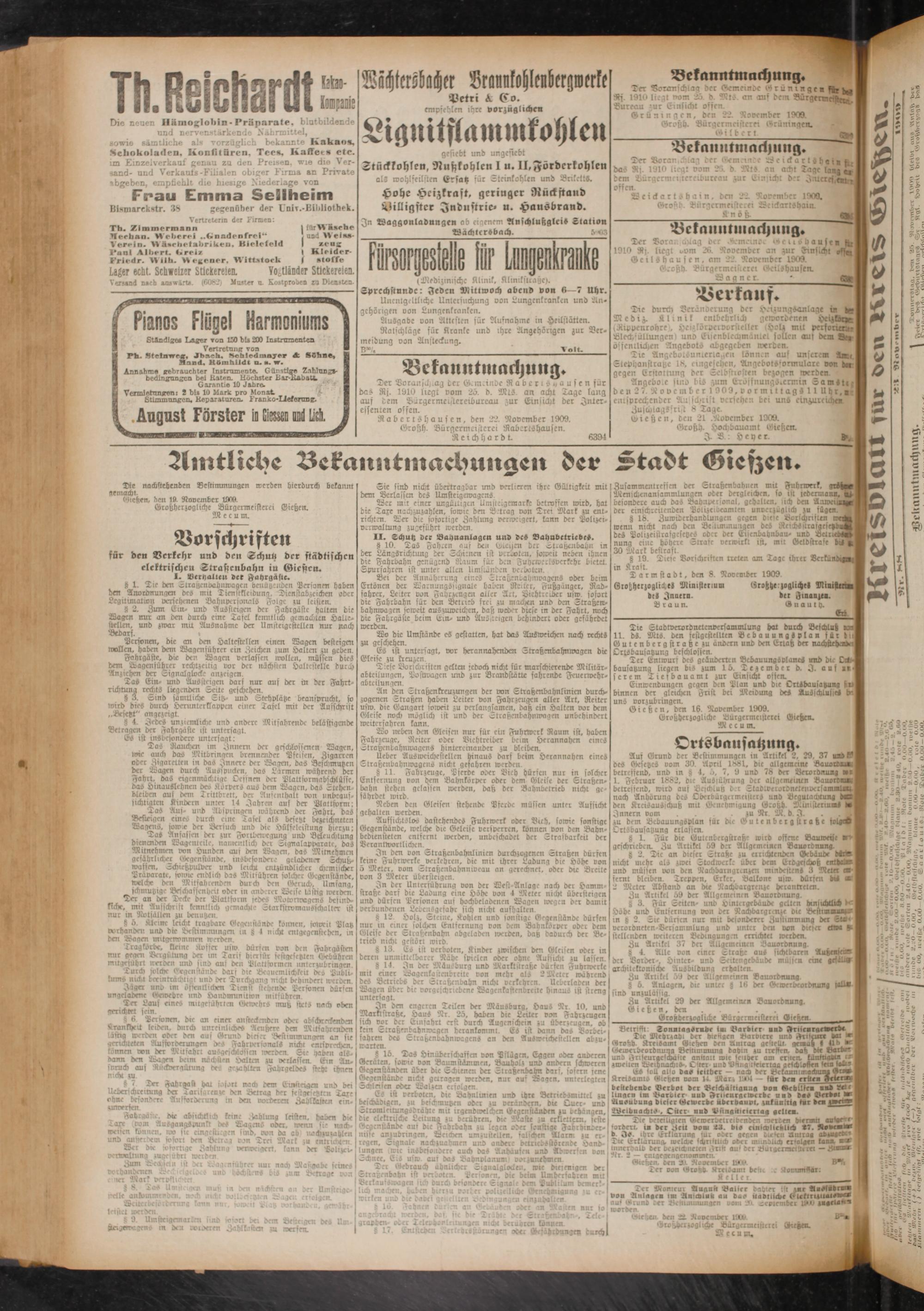 Gießen, ben 16. November 1909.