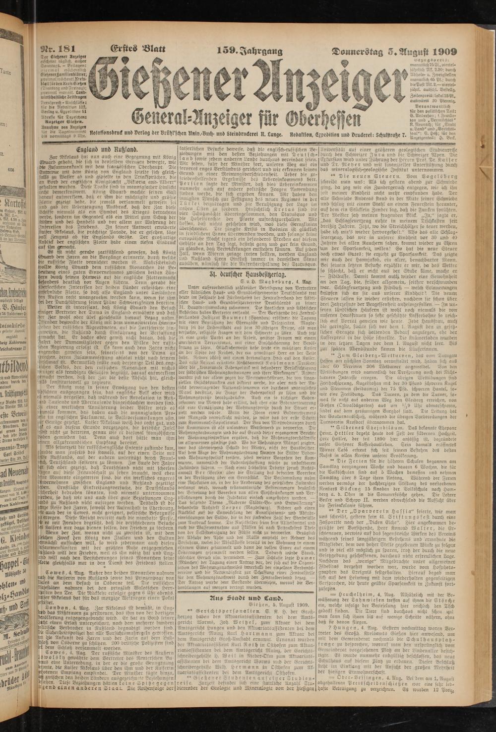 Ter Lietzener Anzeiger erschein! täglich, außer Sonntags. - Beilagen: -.nerinal wöchentlich SietzenerZamrliendlälter; zweimal wöcheitkl.Xreir- blatlfürdenXreis Gießen (TienSlng undFreiiaqt; zweimal monatl. Land« wirtschaftliche öcitfragen secrnsprech - Anschlüsse r für die Redaktion 112, Kerlag u. Expedition 61 Adresse für Tepeichenr
