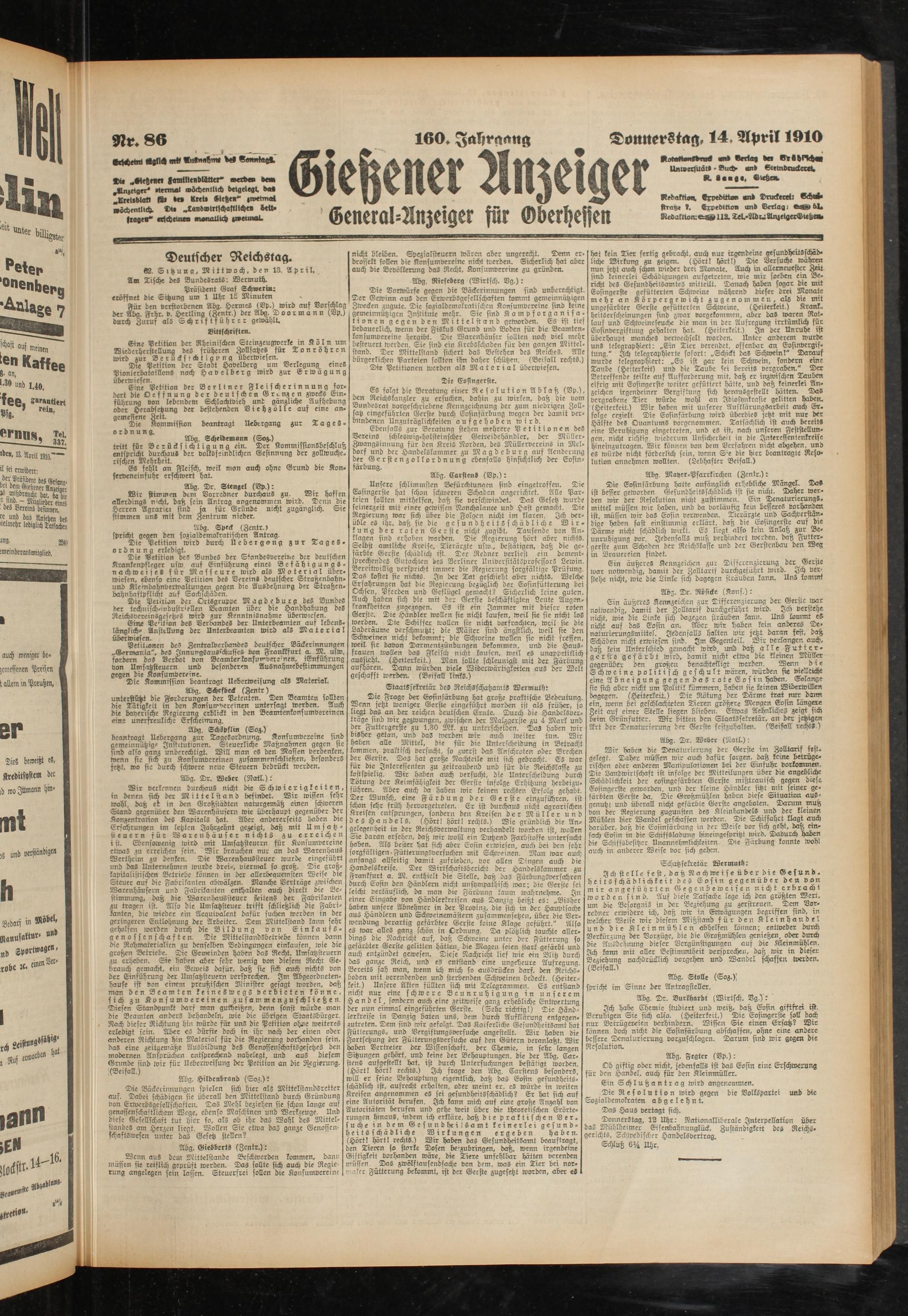 62. Srtzuug, Mittwoch, den 13. April.