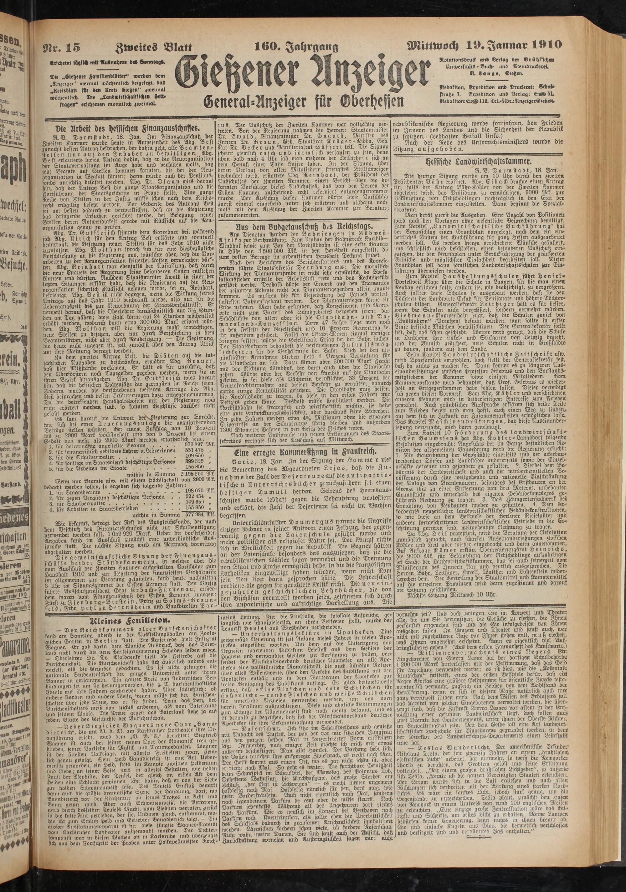 gtr. 15 Zweites Blatt 160. Jahrgang Mittwoch Januar 1910
