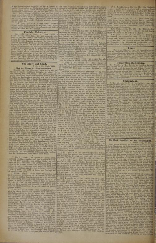 Mehrheit wurde der Antrag zu Graibe getragen, um Neg.-Bez. Danzig und das Herzogtum Sachsen-Altenbura L .Unter großem Andrange des Publikums fand heute vor dem gleich wieder vom Oberbürgermeister zu neuem Leben er- -e- Hausen bei Gießen, 20. Okt. Unser lanojähriaer dte^^^ Ntordprozesses statt,