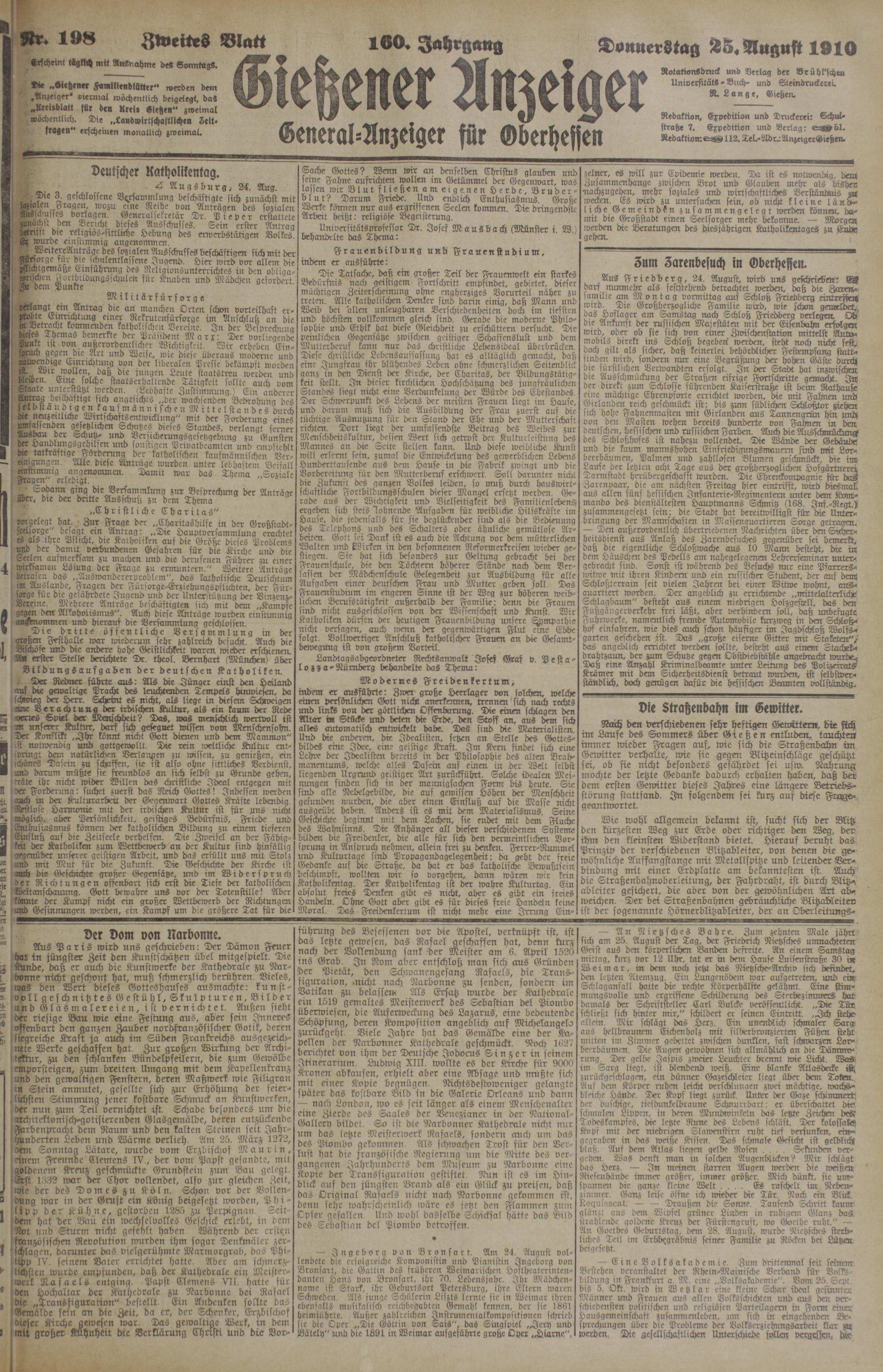 Zweites Blatt 100. Jahrgang Donnerstag Ä5. August 1910