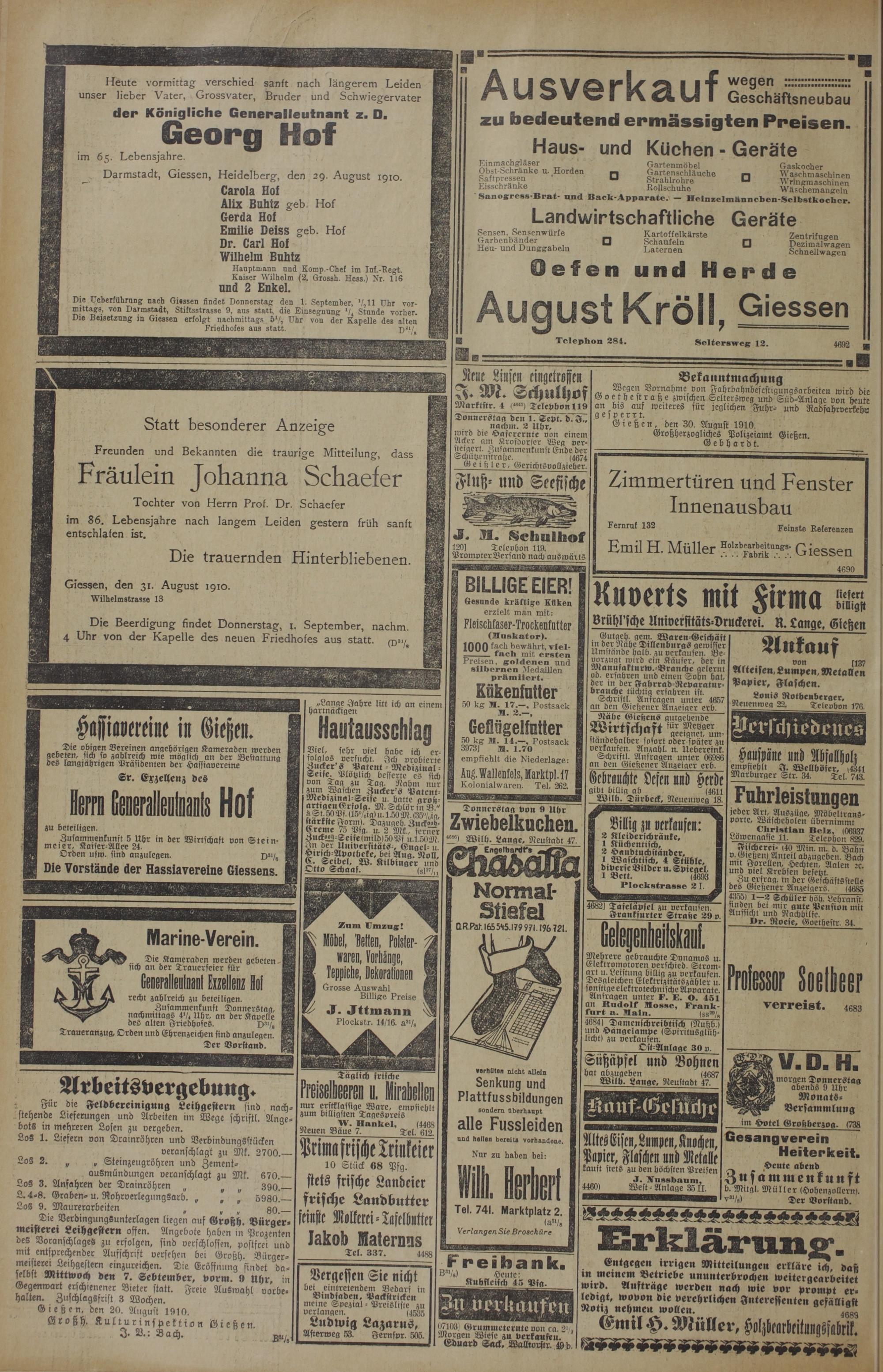 Darmstadt, Giessen, Heidelberg, den 29. August 1910.