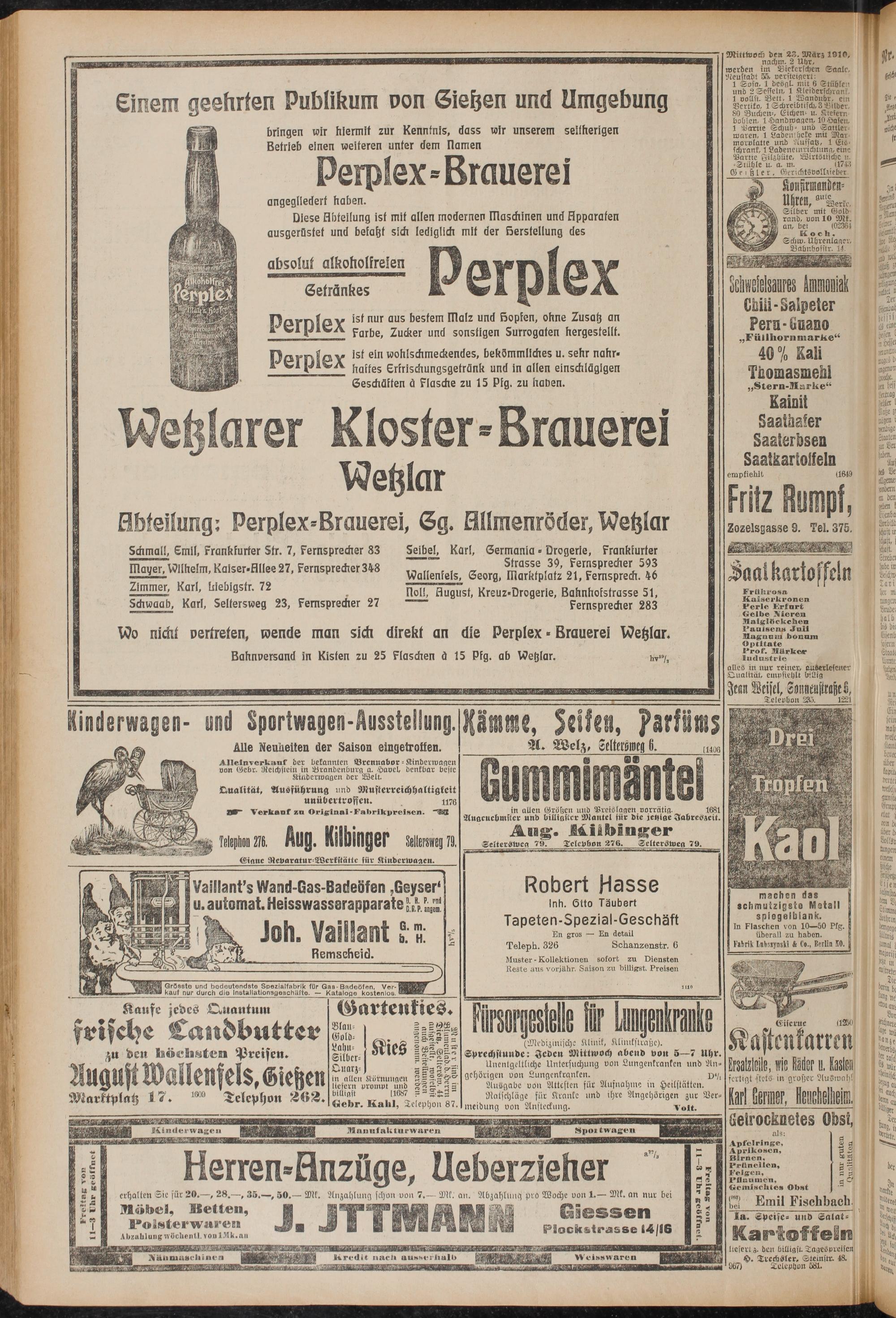 Kiaierwigei- und Sportwagen-Ausstellung. Xätnnge, Zelte«, Parfüms