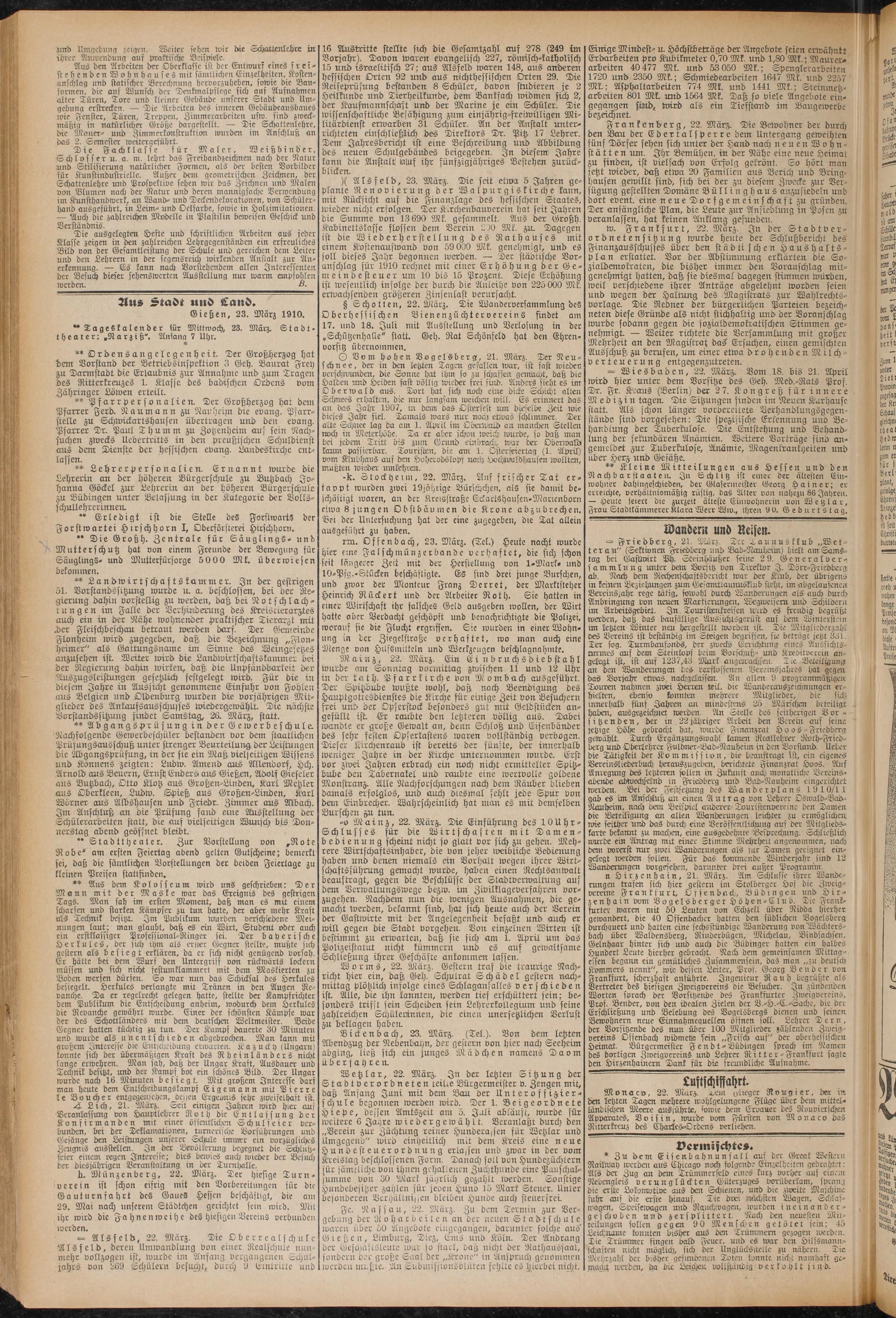 ** Kleine Mitteilungen aus Hessen und den N a ch b a r st a a t c n. In Schlitz ist einer der ältesten Einwohner dahingeschieden, der Glafermeister Georg Hainer; er erreichte, verhältnismäßig rüstig, das Alter von nahezu 86 Jahren. — Heute feiert die zurzeit älteste Einwohnerin von Wetzlar, Frau Stadtkämmerer Klara Werr Ww., ihren 9 0. Geburtstag.