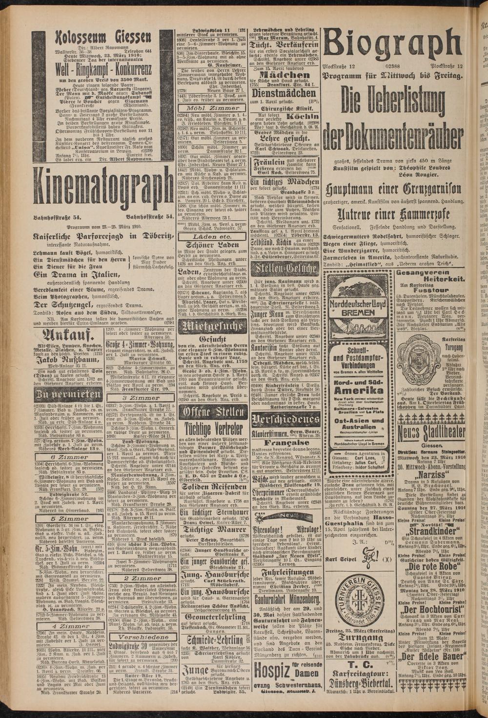 Schriftliche Meldungen unter 1426 an den Gieß. Anz. erb.