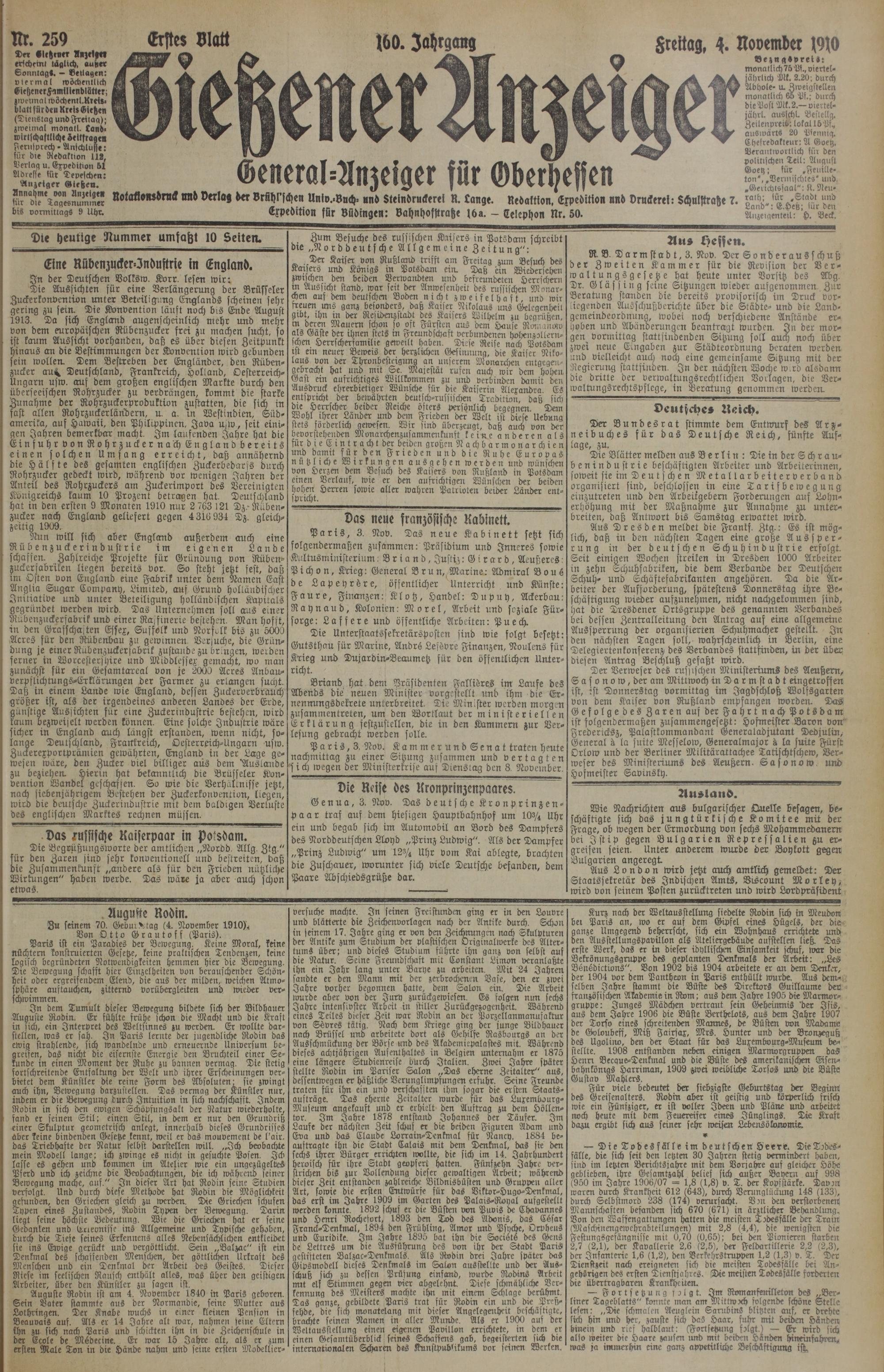 Die heutige Nummer umfaßt 10 Seiten.
