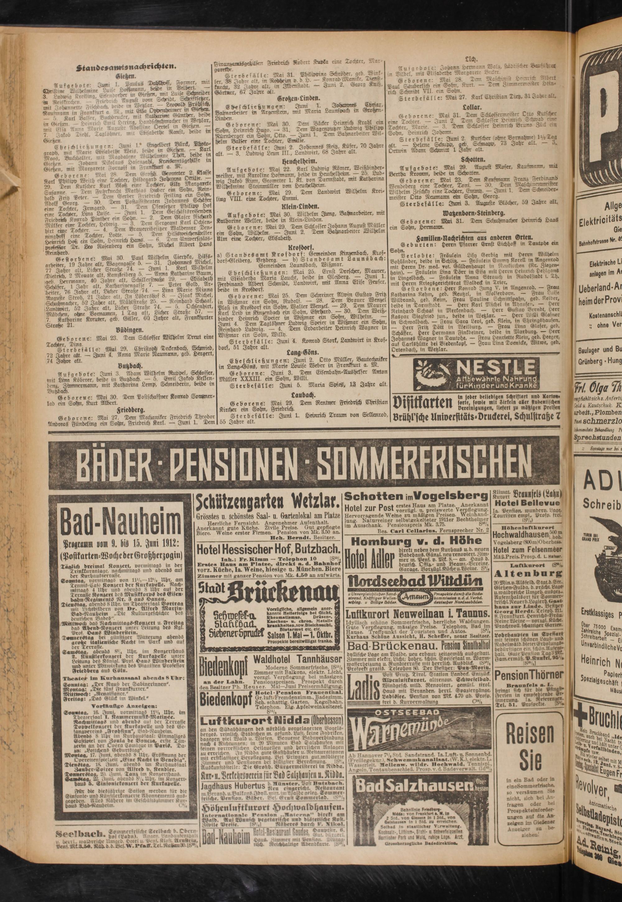 In ein Bad oder In eineSommerfrische, so versäumen Sie nicht, sich bei Anfragen oder bei Prospekt einforder- ungen auf die Anzeigen im Gießener Anzeiger zu beziehen!