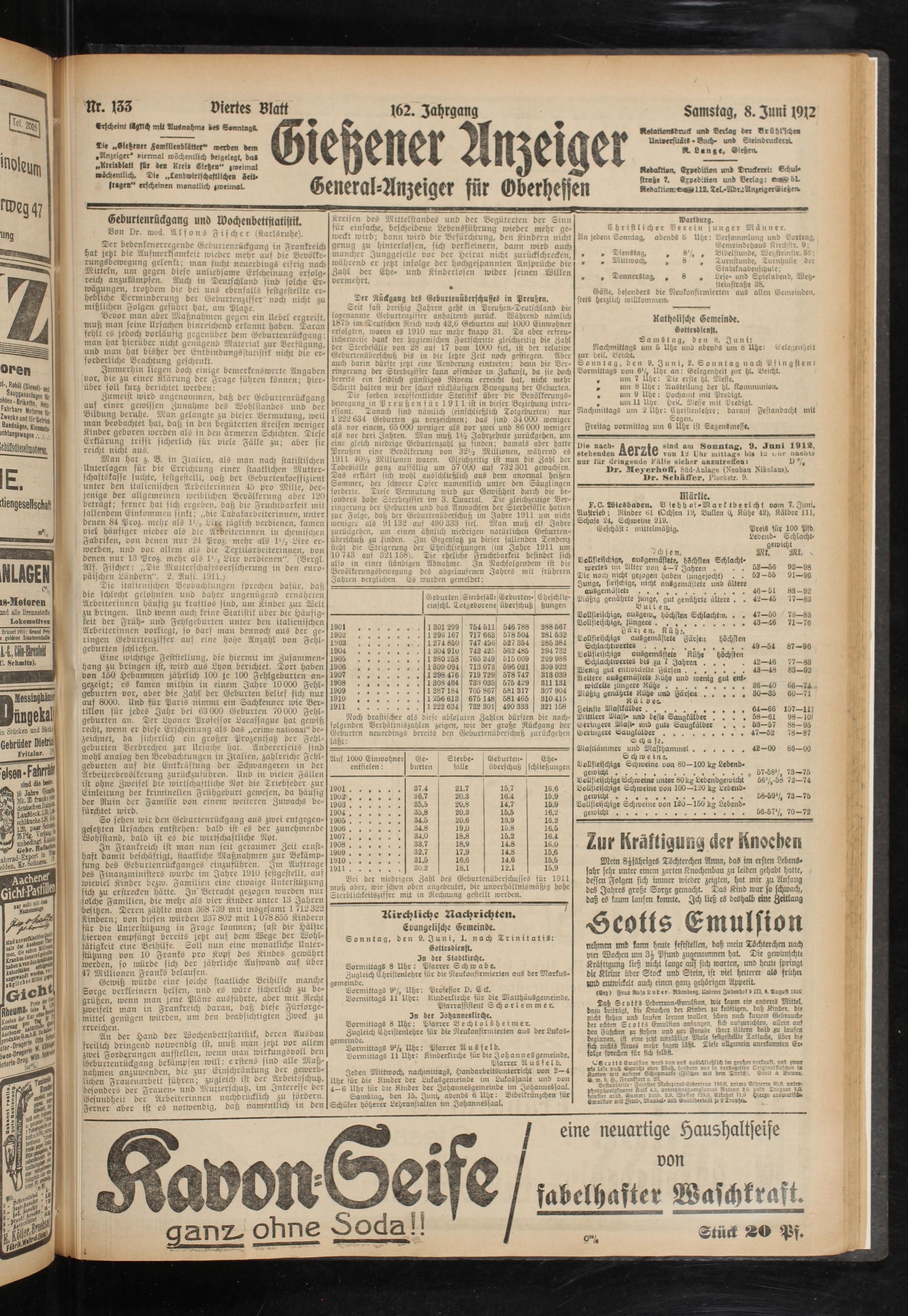 Die „«letzever LamklienblStter" werden dem .Anzeiger' p»ermal wöchentlich beigelegt, bo» „Kntiblatl ffir Öen Kreis Ließe»" zweimal wöchentlich. Die „landwirtschaftliche«! -eit- (regen" erscheinen monatlich zweimal.