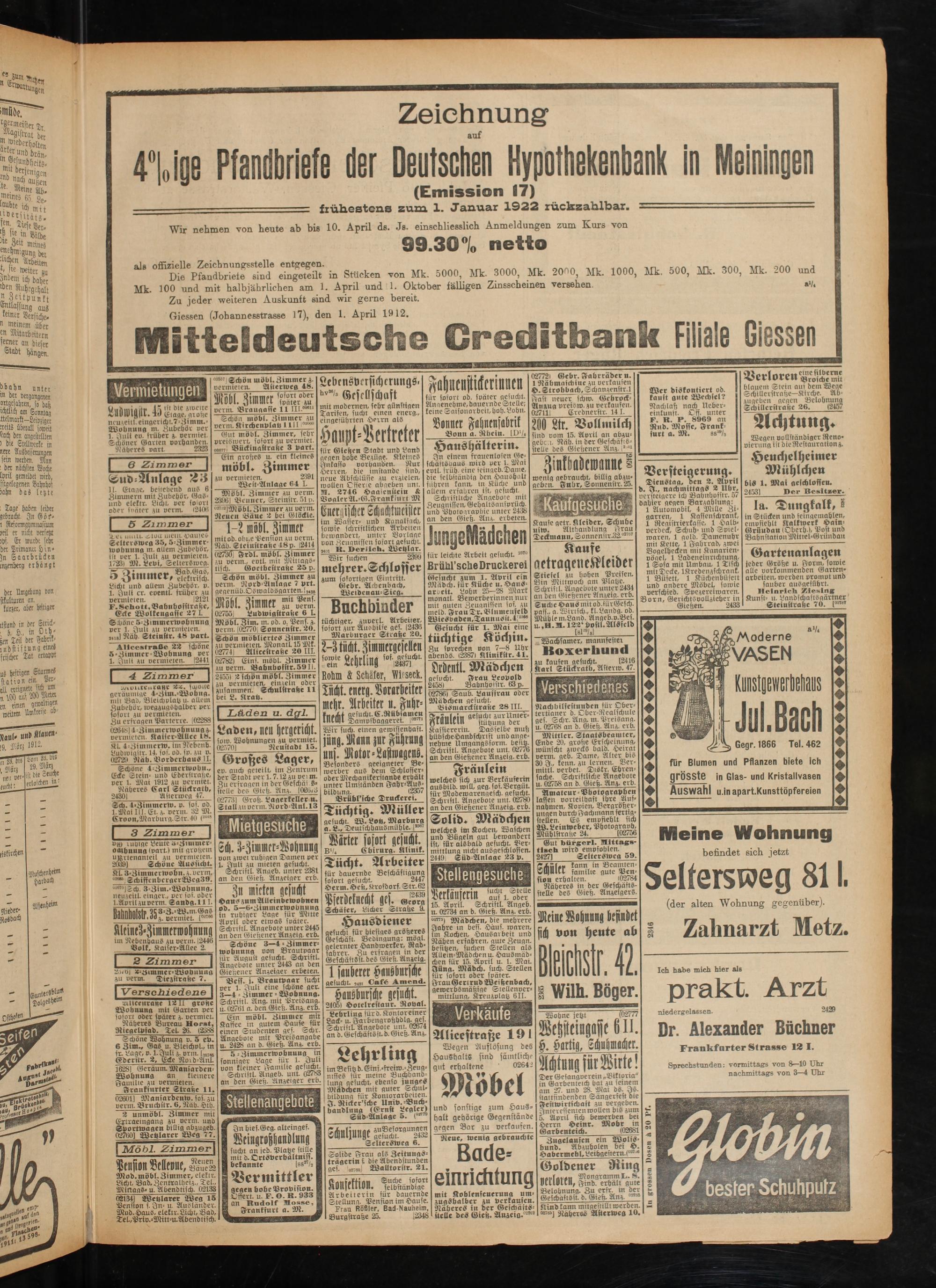 Giessen (Johannesstrasse 17), den 1. April 1912.
