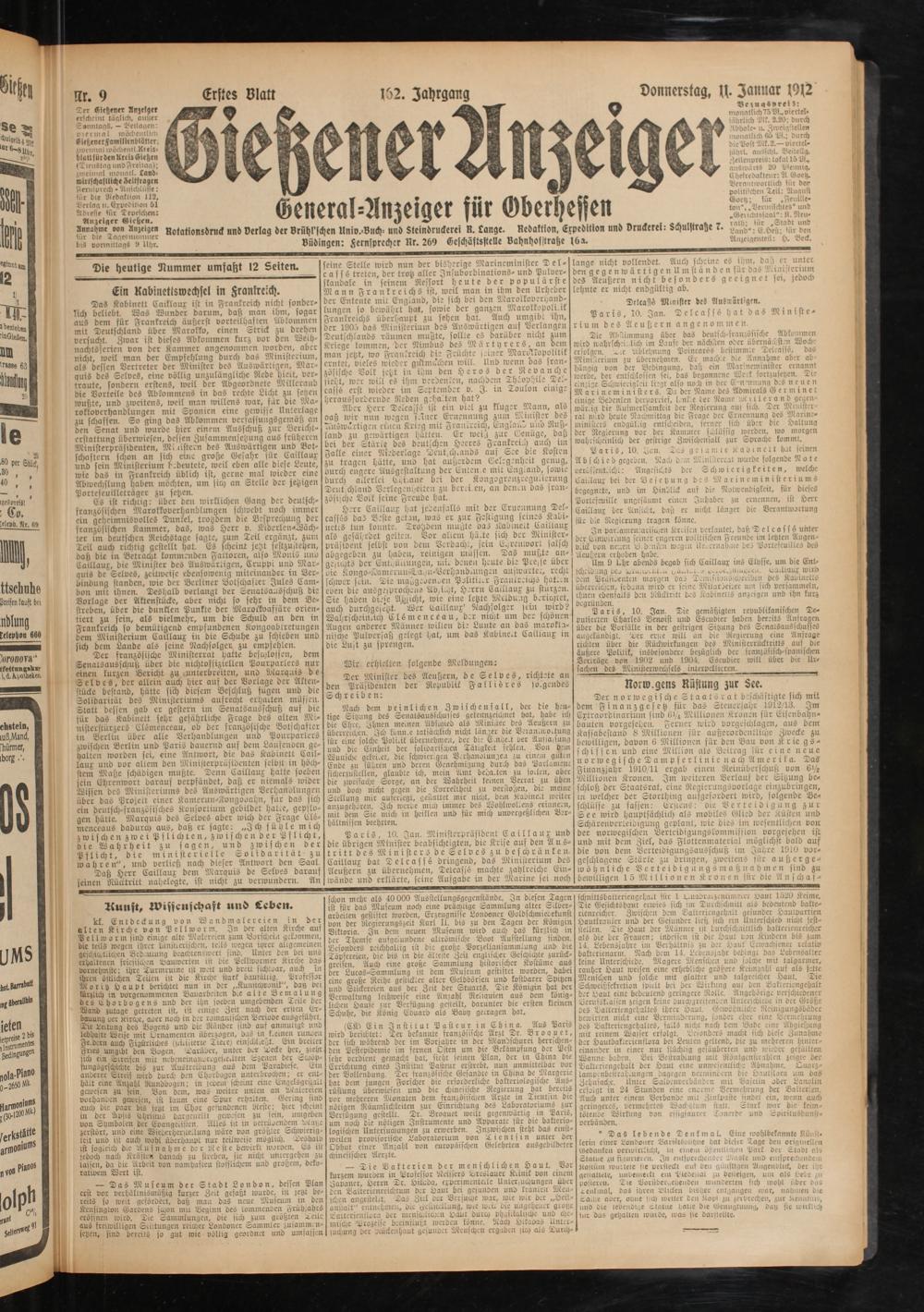 Die heutige Nummer umfafjt 12 Seiten.