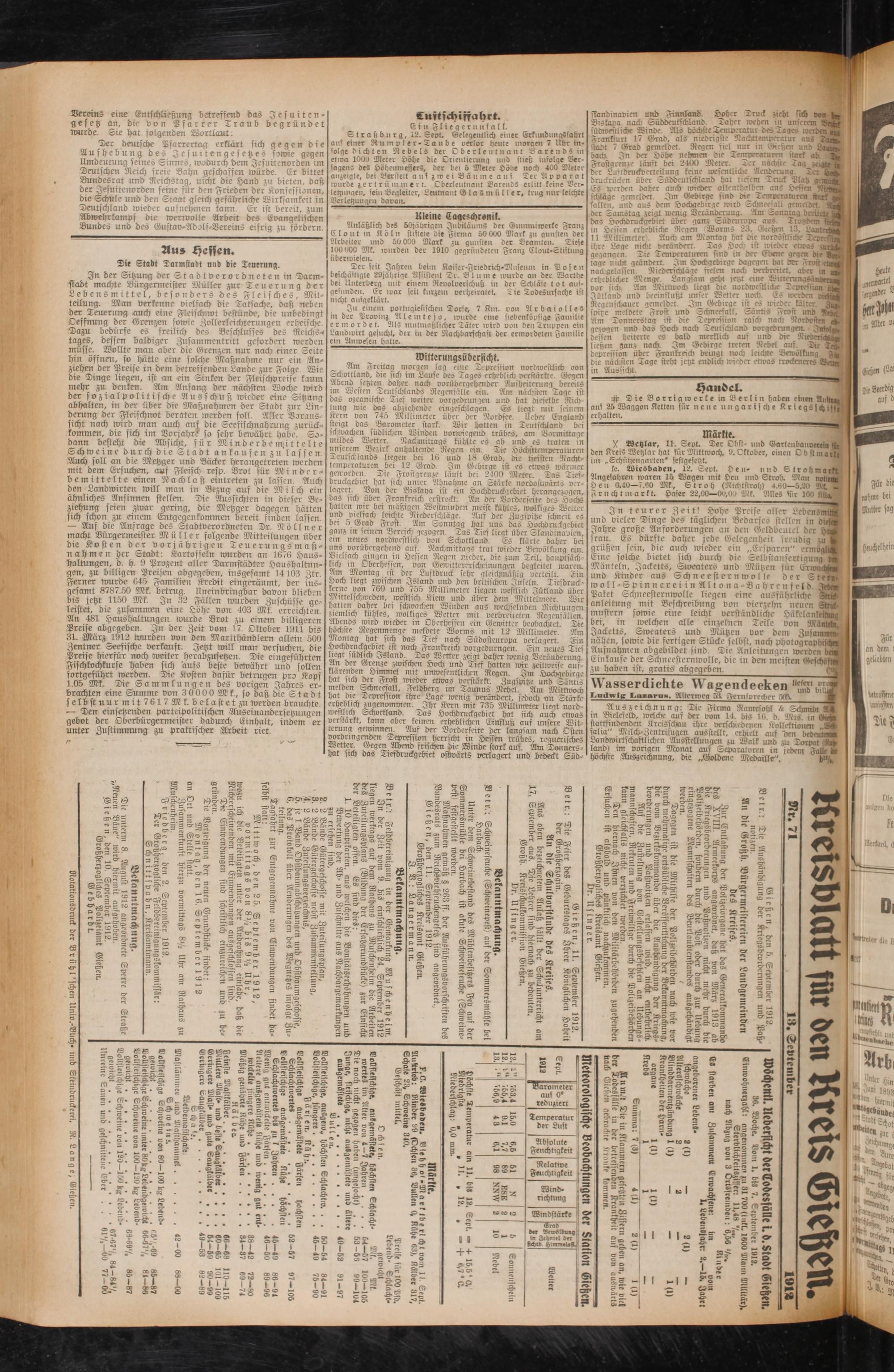 Es werden daher auch wieder allenthalben ans Hessen NirMM sckckägc gemeldet Im Gebirge sind die Temperaturen nrjf fallen, und aus dem Hochgebirge wird Schneefall gemeldet. 9(3 der Samstag zeigt roenig Berüiüxruug. Am Sonntag breücie das Hochdruckgebiet über ganz Südeuropa aus. Tro wem fit® in Hessen erhebliche Regen Worms 23, Gießen 13, LauteMM 11 Millimeter. Auch am Montag hat die nordöstliche TepreffiM ihre Lage nickst verändert. Tas Hoc.- ist wieder evvas gegangen. Tic Temperaturen sind in der Ebene gegen bie 9b3 tage nickst geändert. Im Hochgebirge dagegeii hat tret Frost etnD nad.gelaüeii. Niederschläge fielen noch verbreitet, aber in erhebt,ck^r Menge. Langsam gebt letzt eine Winerun.fsäuoenr» vor sich. Am Mitttvoch liegt die iiorbrocitiidic Teprci'wn Jütland und beeinflußt unser Wetter nock Es werden viMW Regenschauer gemeldet. Im Gebirge ist es nrieber kälter spitze meldete Frost und Schneefall, Särttis Frost und Am Tonnerstag ist die Tepresiion rasch nad; Nordosten gezogen und das Hoch nach Teutschland vorgedrungen. Fwvl-»» dessen heiterte es bald merklich auf und die Niedcri«», ließen ganz nach Im Gebirge treten Nebel auf. Tu Inl- depression über Frankreich bringt noch leichte Bewölkung die nächsten Tage steht jetzt endlich wieder etwas trockenere? Wenn in Aussicht.