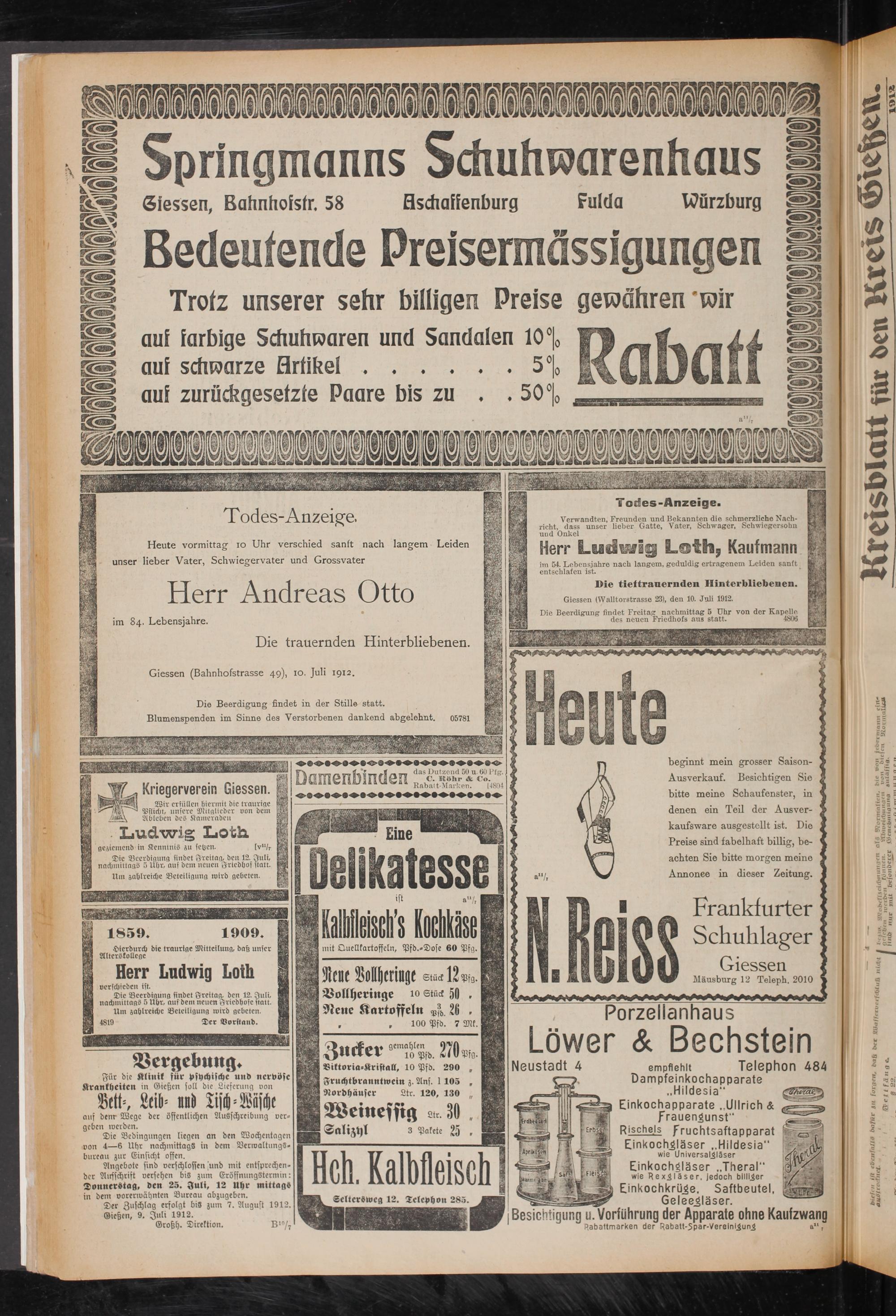 Giessen (Walltorstrasse 23), den 10. Juli 1912.