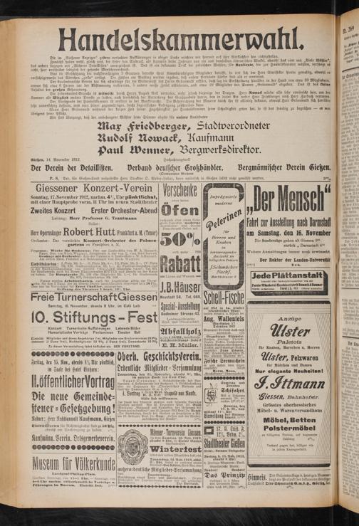 Freitag, d. 15. Nov. 1912, abends 8 Uhr: