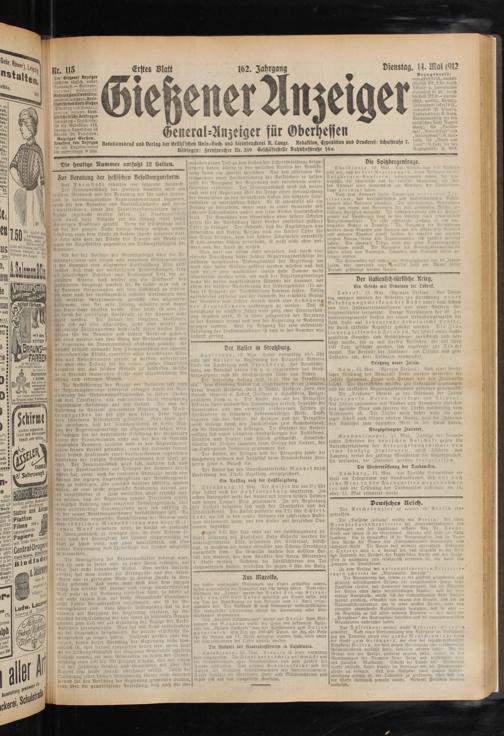 Hr. 115 Erster Blatt 162. Jahrgang Dienstag, 14- Mai (912