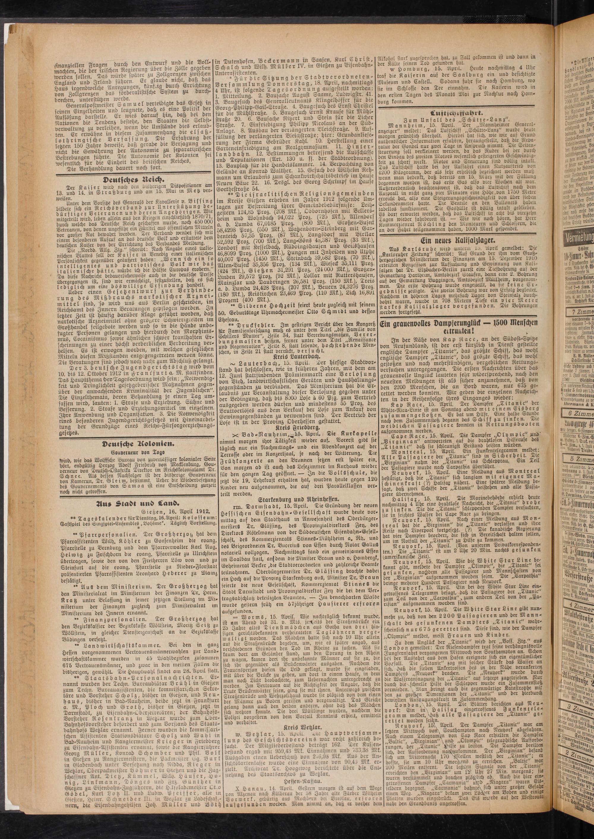 ist am Abend des 31. v. Mts. jeweils der Straßenbrücke ein schäft des gesunkenen Dampfers „Titanic" wahr- 23 Jahre altes Dienstmädchen aus Gotha von drei bis- ( nur675 gerettet fint>. Diese find, wie der Dampfer