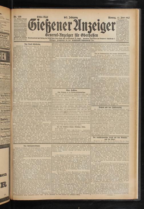 ®r- Jj® , , _____Erster Blatt <62. Jahrgang Montag, \l. Juni 1912