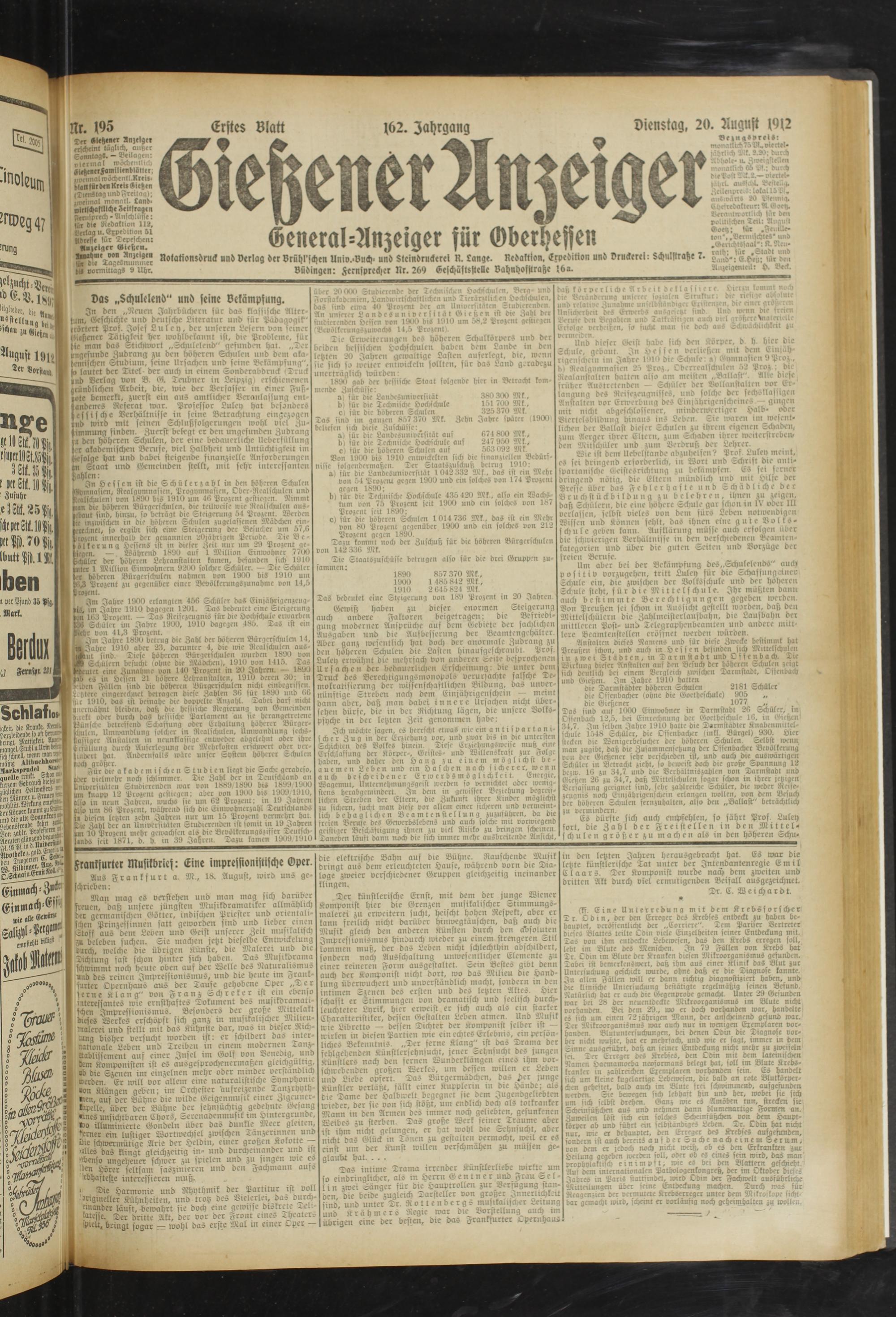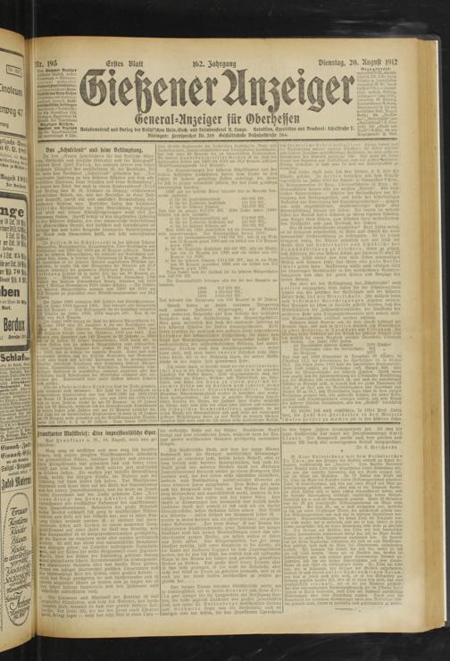 M. 195 Erster Blatt 162. Jahrgang Dienstag, 20. August 19(2