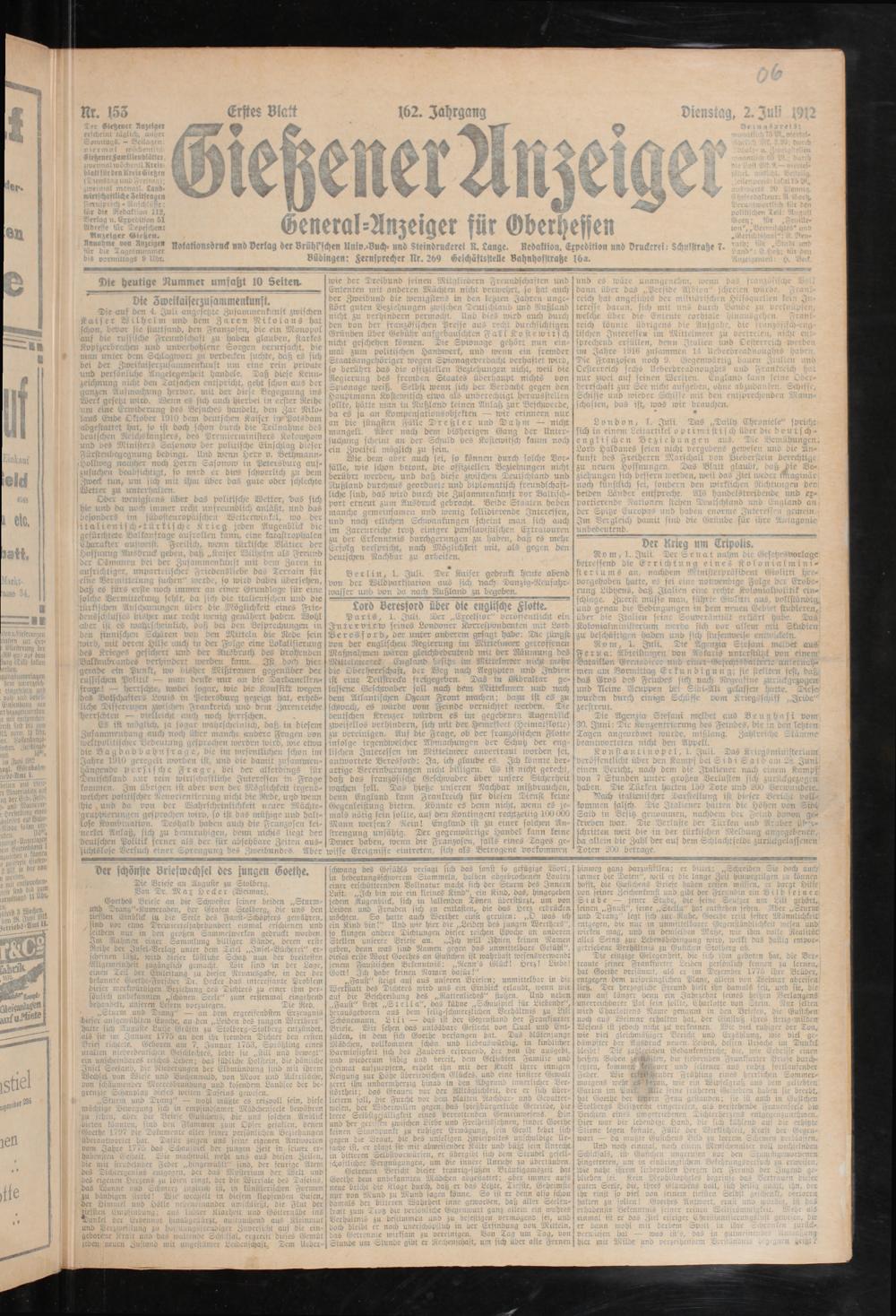 Dienstag, 2. Juli 1912