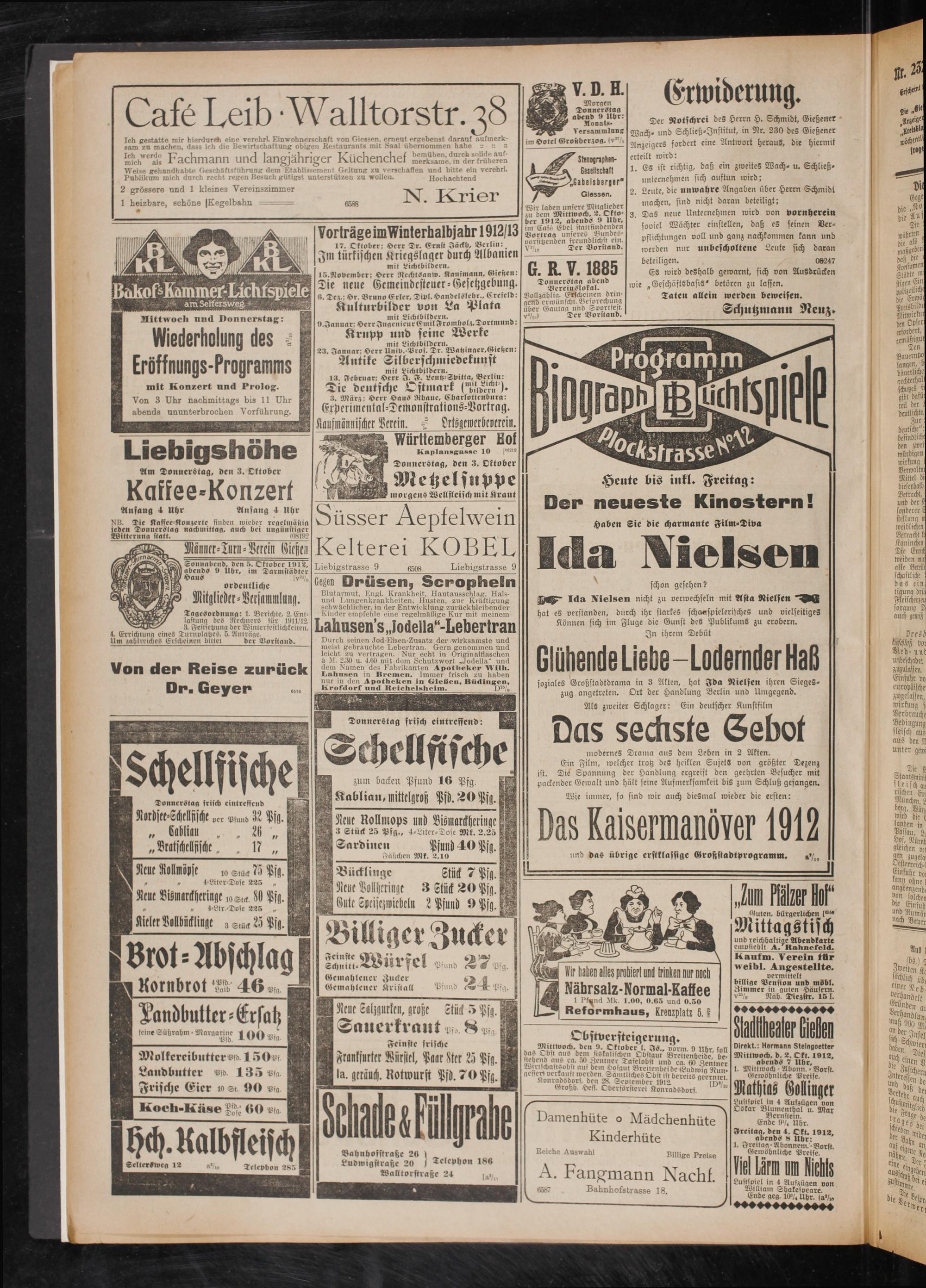 Freitag, den 4. Qkt. 1912, abends 8 Ubr:
