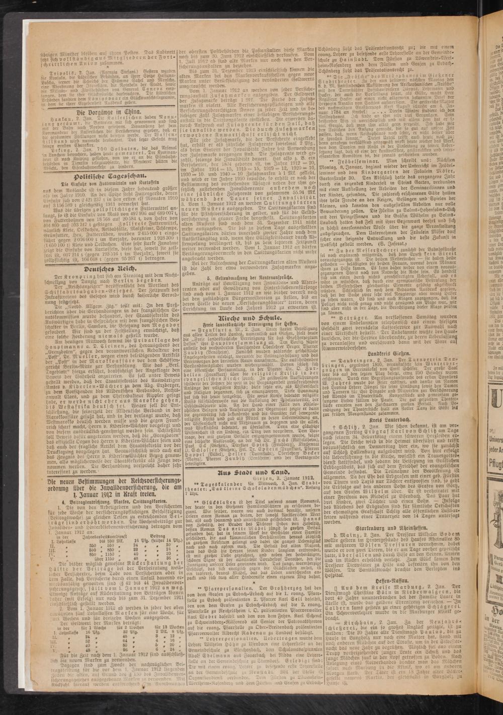 Anträge auf Bewilligung von Invaliden- und Altersrenten ober auf Gewährung von Hinterbliebenenfürforge ind auch vom 1. Januar 1912 an wie bisher vorerst noch bei den zuständigen Bürgermeistereien zu stellen, bis an deren Stelle die neuen „Versicherungsämter" treten, deren Errichtung im Laufe des Jahres 1912 zu erwarten ist.