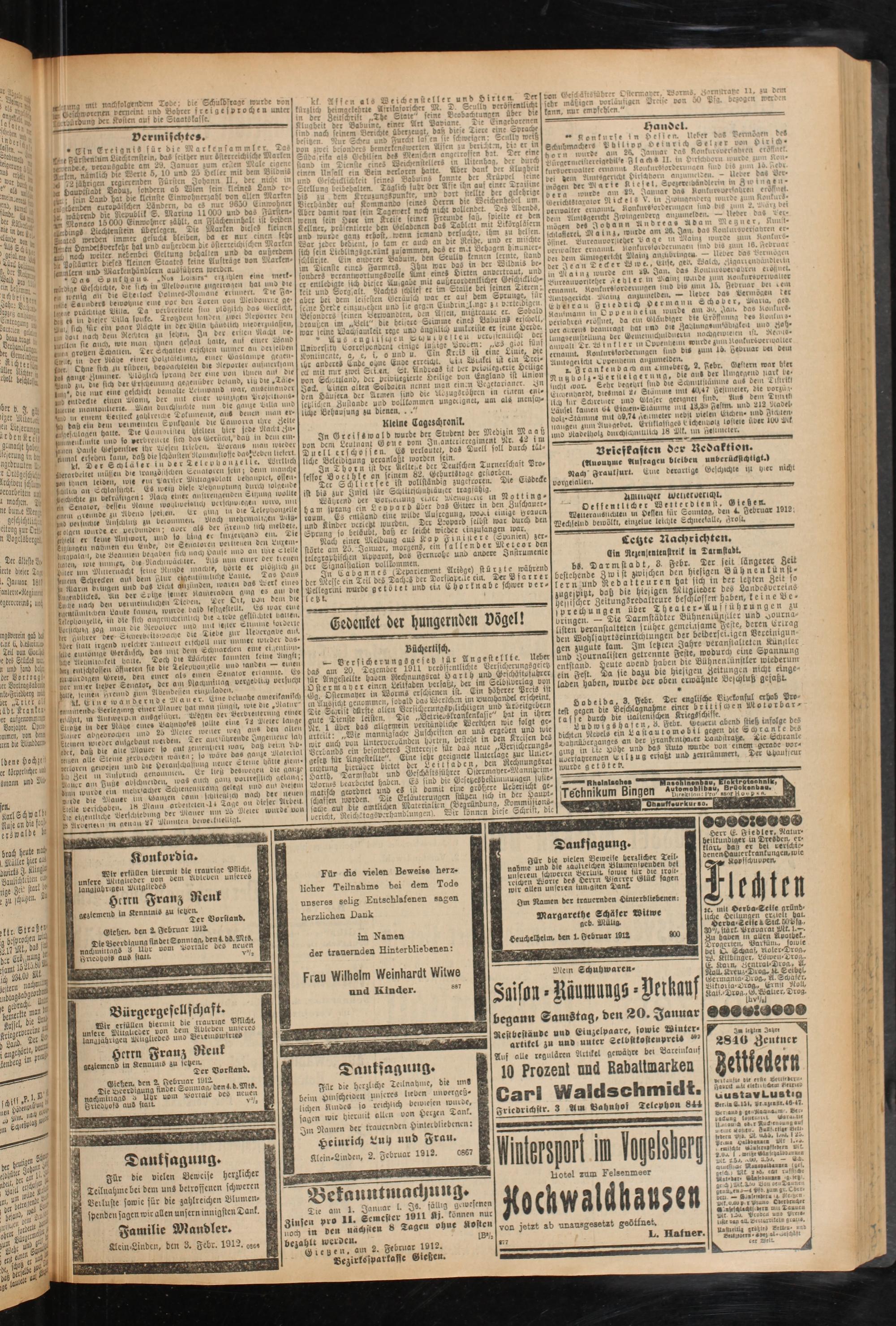 toeiteroHeniDicn m Hessen für Sonntag, den 4 tZebruar 1912