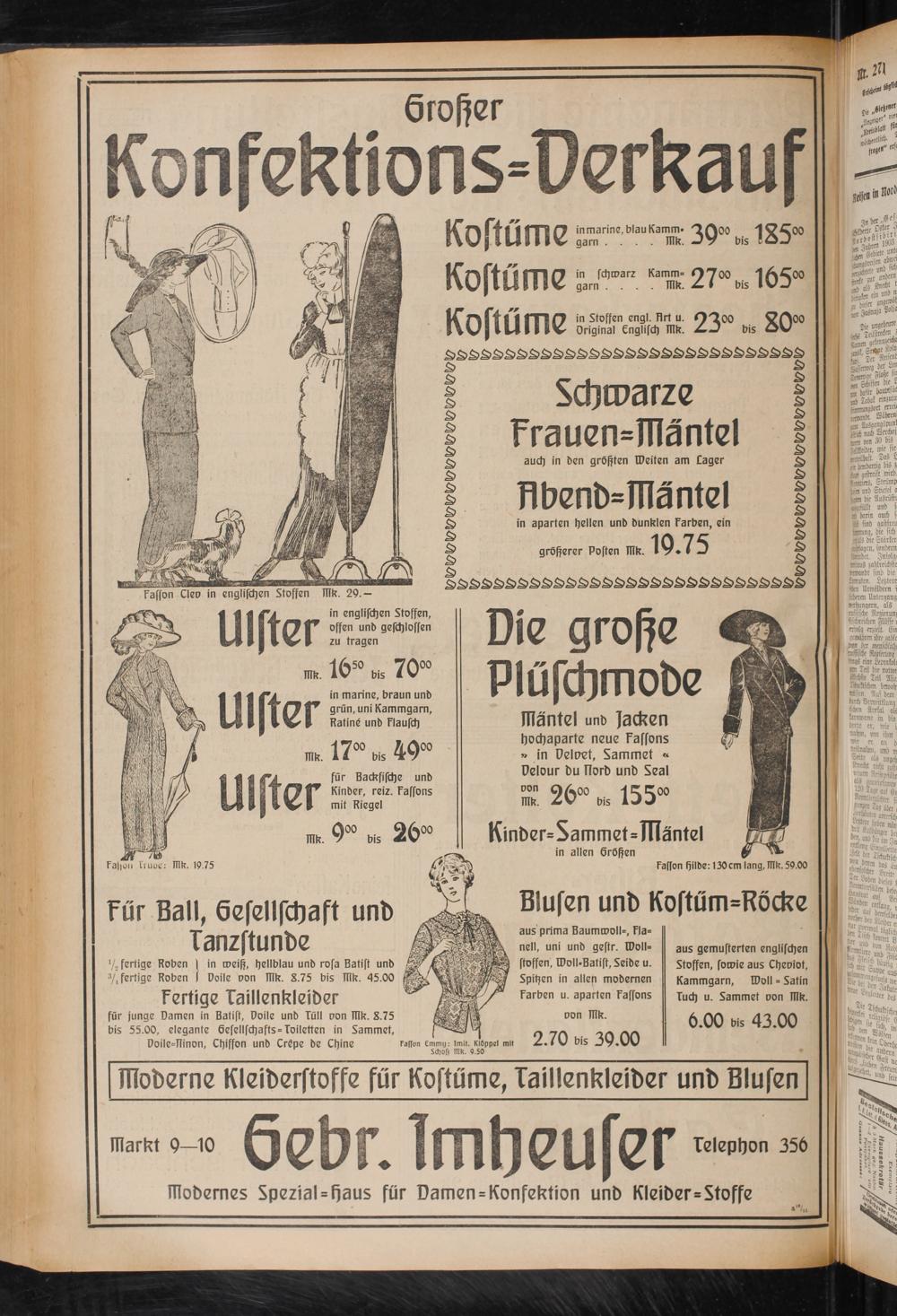 Hlobemes Spezial = haus für Damen = Konfektion und Kleider-Stoffe