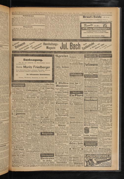 Herrn Moritz Friedberger in so überreichem Masse erwiesene Teilnahme, sprechen wir hierdurch unseren tiefgefühlten Dank aus.