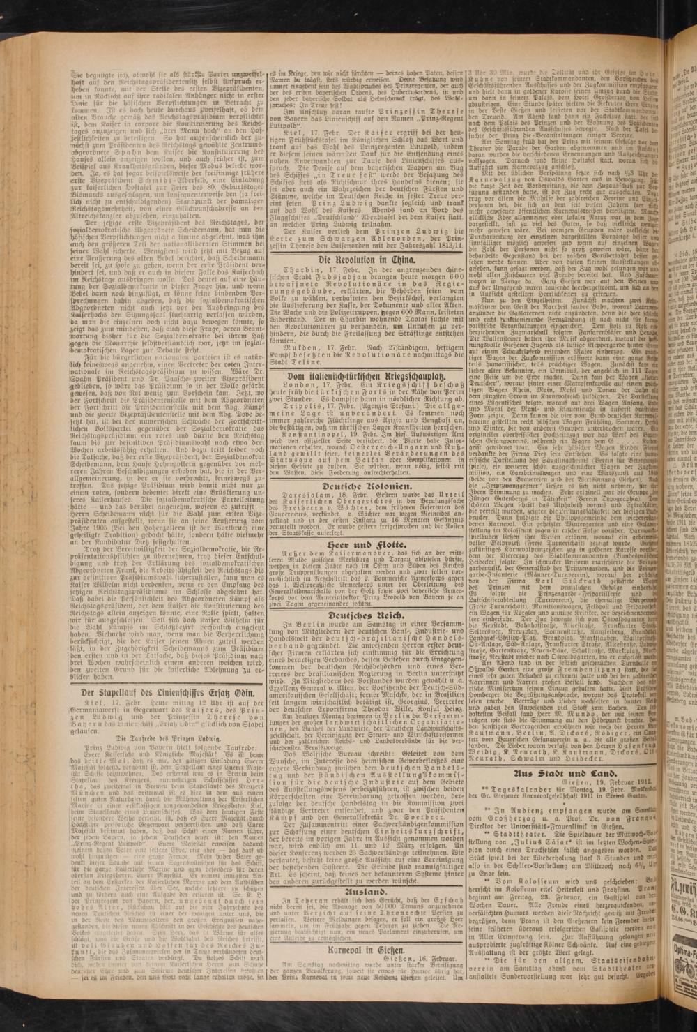 Kiel, 17. Febr. Heute mittag 12 Uhr ist auf der /Gerrnaniawerfl in Gegenwart des Kaisers, des Prinzen Ludwig und der Prinzessin Therese von B a v e r n das Linienschiff „Enatz jübtn" glücklich von Stapel gelaufen.