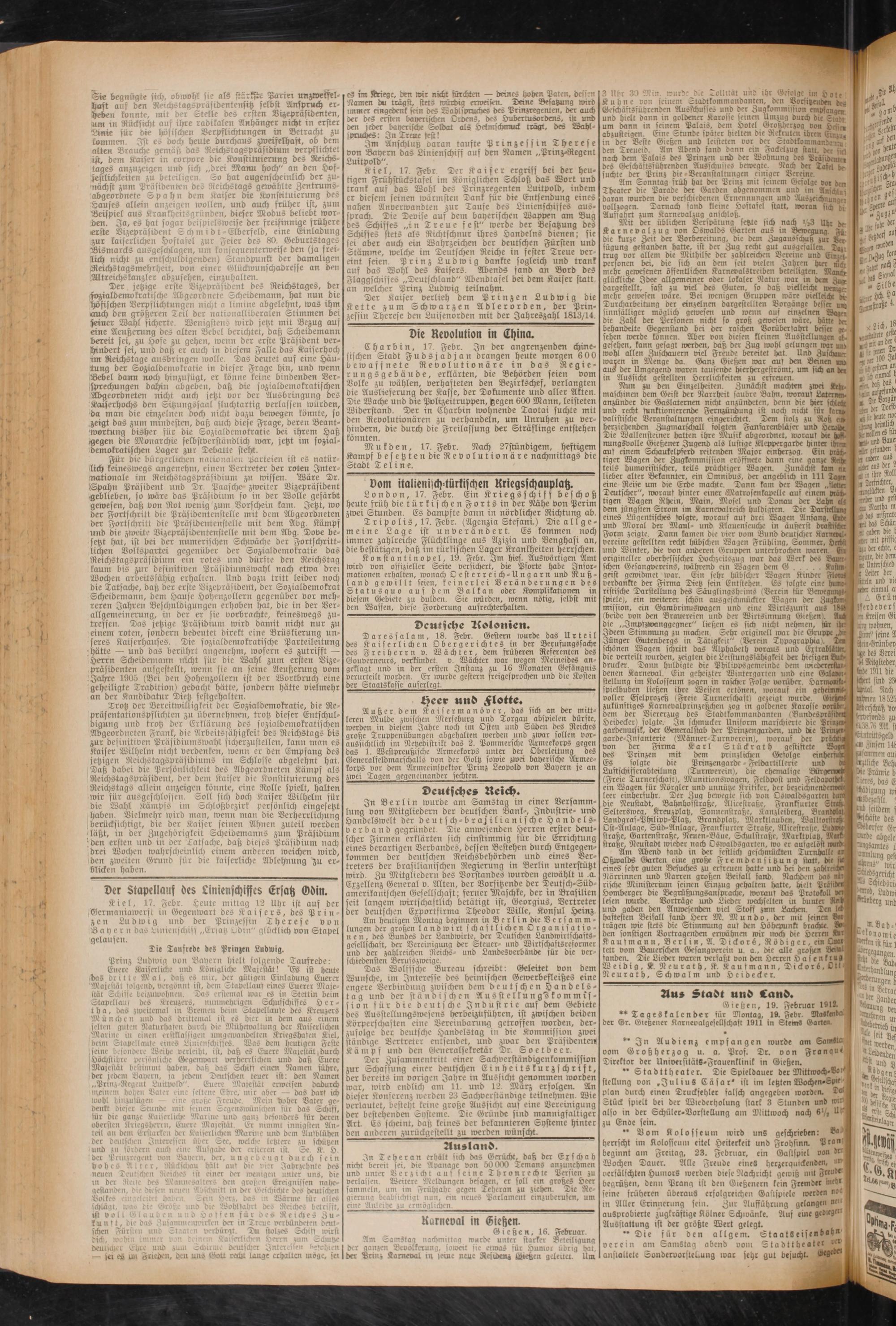 ** Tageskalen der für Montag, IS. Febr. Ma«k Dr. Gießener Karnevalgesellschaft 1911 in CtemS ©arten.