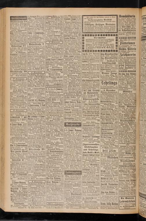 Frau von Vnrsztmi, 1993 Ludwigstr. 38 v. Jg. br. Mädchen für uoriu. gesucht. Licheritr. 35IL 1101,7 Braves fL Zimmermadch. gesucht. Scltcrsw. 40. 02LL