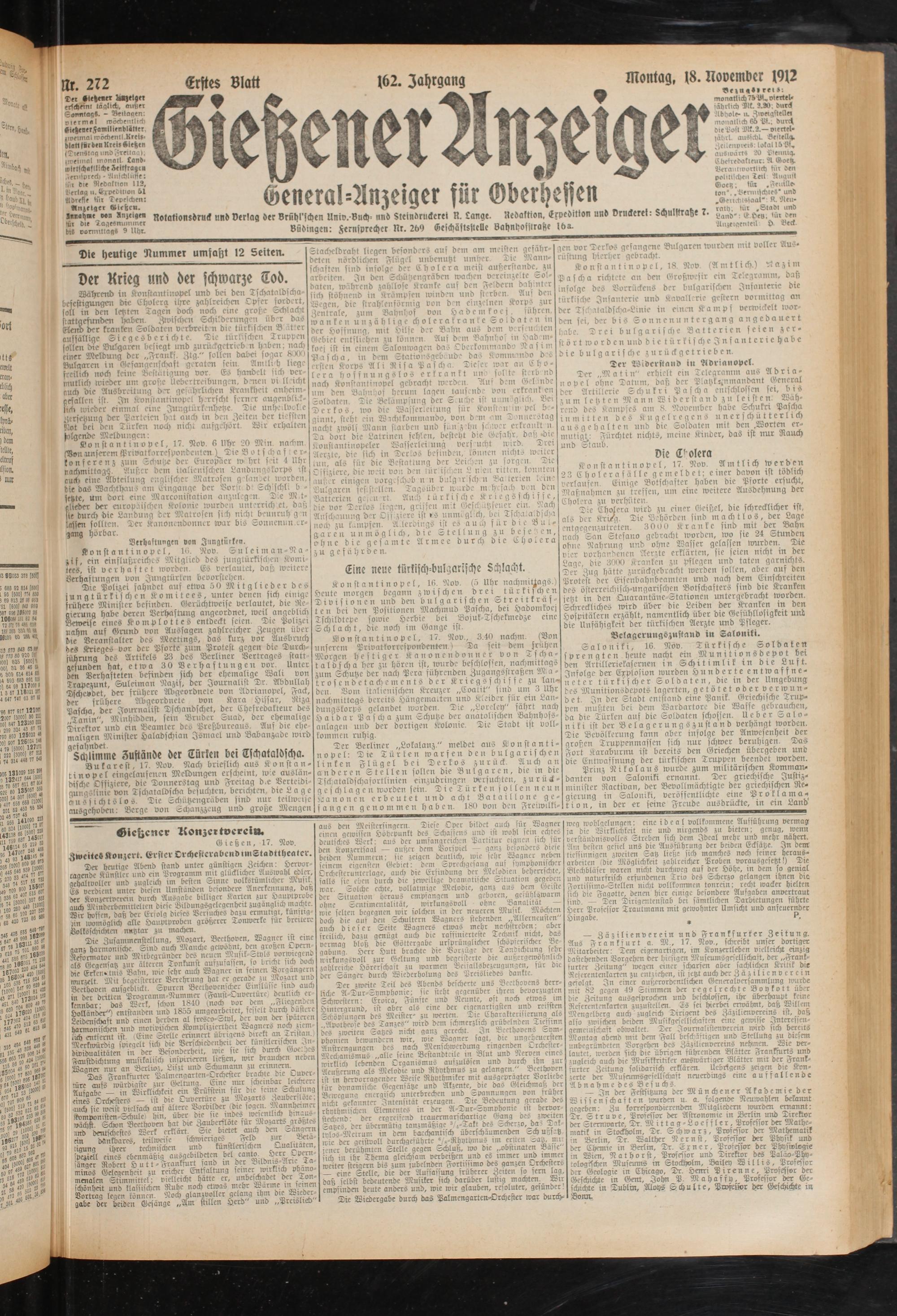 N, 272 Erste; Blatt 162. Jahrgang Montag, 18. November 1912