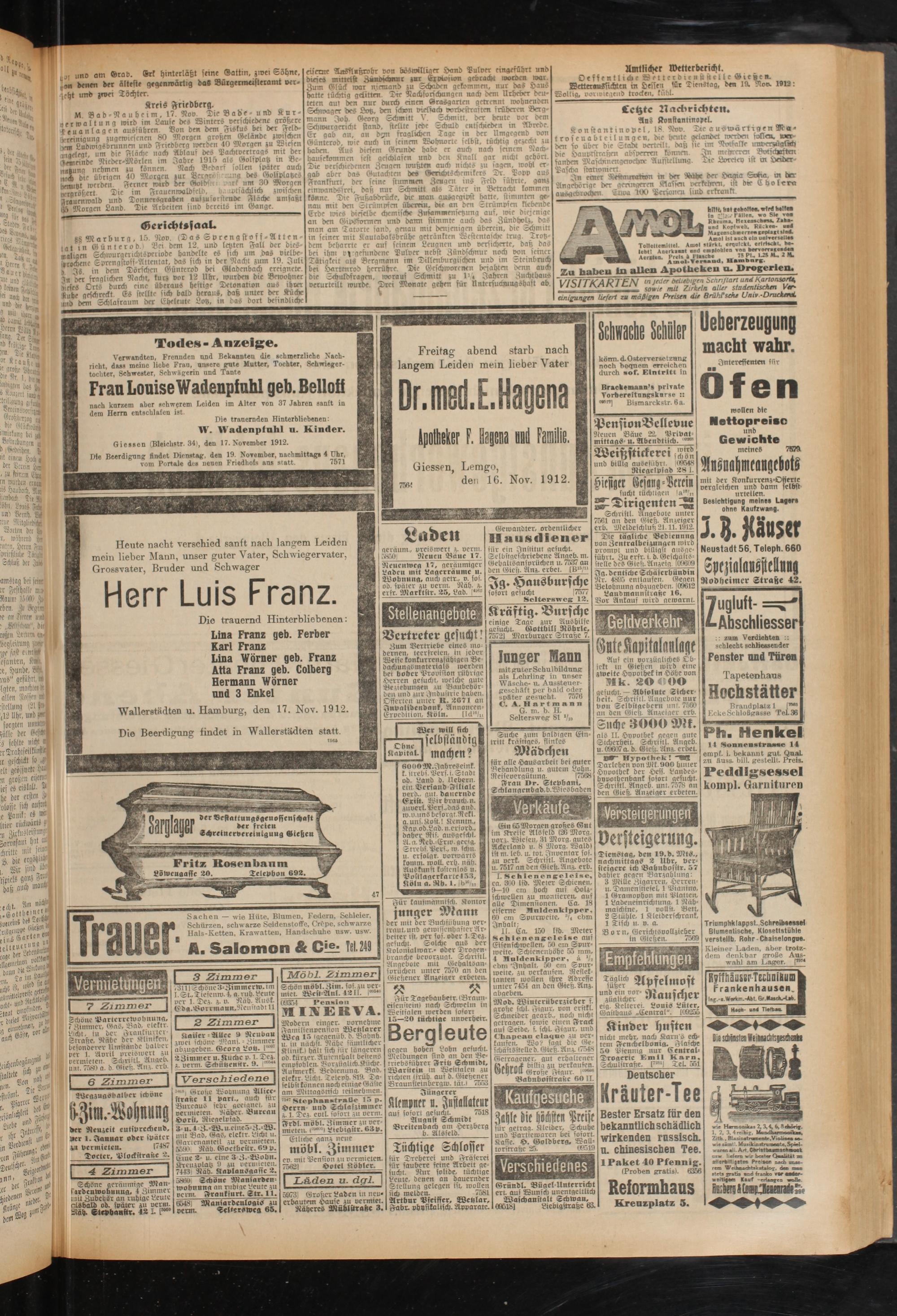 Giessen, Lemgo, den 16. Nov. 1912.